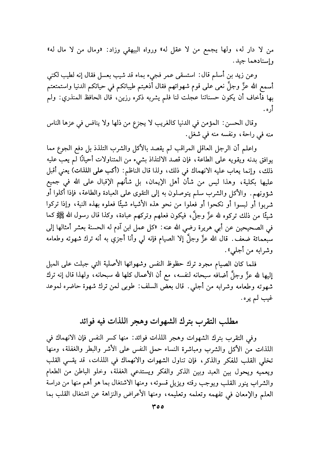 قَالَ الْإِمَامُ أَحْمَدُ - رَضِيَ اللَّهُ عَنْهُ -: يُكْرَهُ أَنْ يَنَامَ بَعْدَ الْعَصْرِ يُخَافُ عَلَى عَقْلِهِ.