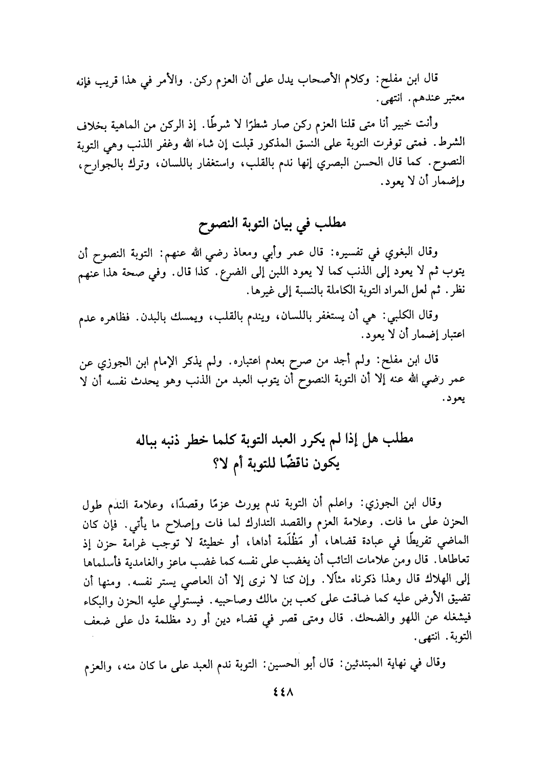 وَفِي وَصِيَّةِ الْإِمَامِ الْمُوَفِّقِ ابْنِ قُدَامَةَ طَيَّبَ اللَّهُ رُوحَهُ مَا لَفْظُهُ: فَاغْتَنِمْ رَحِمَك اللَّهُ حَيَاتَك النَّفِيسَةَ، وَاحْتَفِظْ بِأَوْقَاتِك الْعَزِيزَةِ، وَاعْلَمْ أَنَّ مُدَّةَ حَيَاتِك مَحْدُودَةٌ، وَأَنْفَاسَك مَعْدُودَةٌ، فَكُلُّ نَفَسٍ يَنْقُصُ بِهِ جُزْءٌ مِنْك، وَالْعُمْرُ كُلُّهُ قَصِيرٌ، وَالْبَاقِي مِنْهُ هُوَ الْيَسِيرُ، وَكُلُّ جُزْءٍ مِنْهُ جَوْهَرَةٌ نَفِيسَةٌ لَا عَدْلَ لَهَا