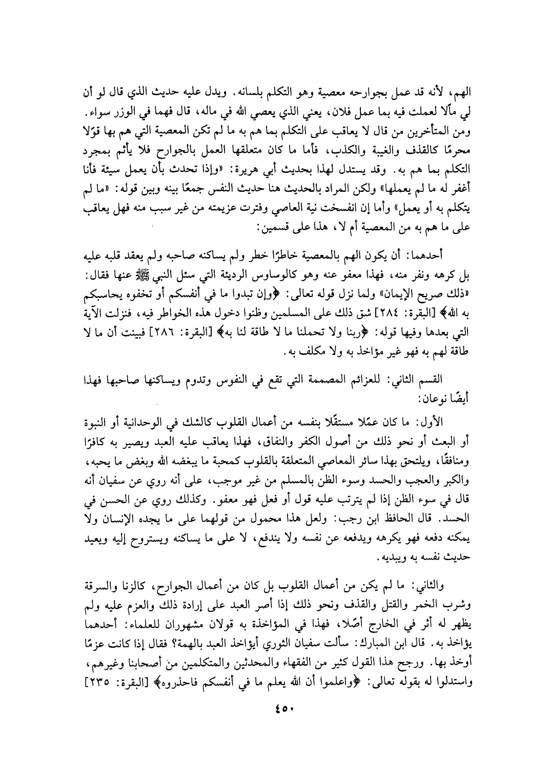 اللَّيْلِ وَسَوَادِهِ فَإِنَّ الْمَغْبُونَ مَنْ غُبِنَ خَيْرَ اللَّيْلِ وَالنَّهَارِ، وَالْمَحْرُومُ مَنْ حُرِمَ خَيْرَهُمَا، إنَّمَا جُعِلَا سَبِيلًا لِلْمُؤْمِنِينَ إلَى طَاعَةِ رَبِّهِمْ، وَوَبَالًا عَلَى الْآخَرِينَ لِلْغَفْلَةِ عَنْ أَنْفُسِهِمْ، فَأَحْيُوا لِلَّهِ أَنْفُسَكُمْ بِذِكْرِهِ فَإِنَّمَا تَحْيَا الْقُلُوبُ بِذِكْرِ اللَّهِ عَزَّ وَجَلَّ. كَمْ مِنْ قَائِمٍ لِلَّهِ جَلَّ وَعَلَا فِي هَذَا اللَّيْلِ قَدْ اغْتَبَطَ بِقِيَامِهِ فِي ظُلْمَةِ حُفْرَتِهِ. وَكَمْ مِنْ نَائِمٍ فِي هَذَا اللَّيْلِ قَدْ نَدِمَ عَلَى طُولِ نَوْمِهِ عِنْدَمَا يَرَى مِنْ كَرَامَةِ اللَّهِ لِلْعَابِدِينَ غَدًا. فَاغْتَنِمُوا مَمَرَّ السَّاعَاتِ وَاللَّيَالِي وَالْأَيَّامِ رَحِمَكُمْ اللَّهُ.