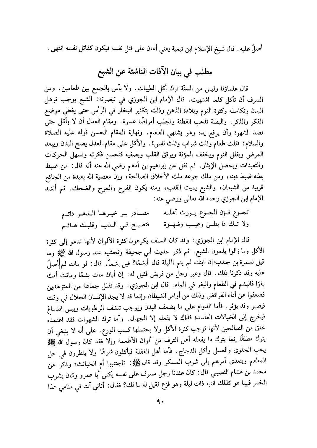 الْقَيْدَ الْقَاضِي وَابْنُ عَقِيلٍ وَغَيْرُهُمَا، وَإِطْلَاقُ النَّاظِمِ يَشْمَلُ مَا إذَا كَانَ الْآكِلُ وَحْدَهُ، وَعِبَارَةُ الْآدَابِ الْكُبْرَى تَأْبَاهُ.