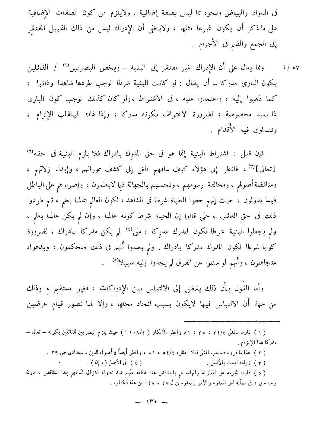 وَمِمَّا يدل على أَن الْإِدْرَاك غير مفتقر إِلَى البنية ويخص الْبَصرِيين الْقَائِلين بِكَوْن البارى مدْركا أَن يُقَال لَو كَانَت البنية شرطا لوَجَبَ طردها شَاهدا وغائبا كَمَا ذَهَبُوا اليه واعتمدوا عَلَيْهِ فِي الِاشْتِرَاط وَلَو كَانَ كَذَلِك لوَجَبَ كَون البارى ذَا بنية مَخْصُوصَة لضَرُورَة الأعتراف بِكَوْنِهِ مدْركا وَإِذا ذَاك فينقلب الْإِلْزَام وتتساوى فِيهِ الْأَقْدَام