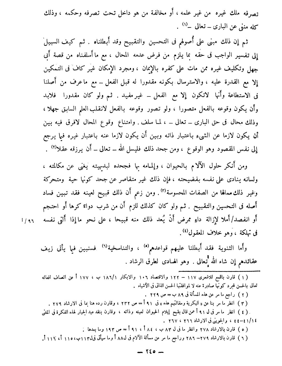 وَأما الثنوية فقد أبطلنا عَلَيْهِم قواعدهم والتناسخية فسنبين فِيمَا يأتى زيف عقائدهم إِن شَاءَ الله تَعَالَى وَهُوَ الهادى لطرق الرشاد