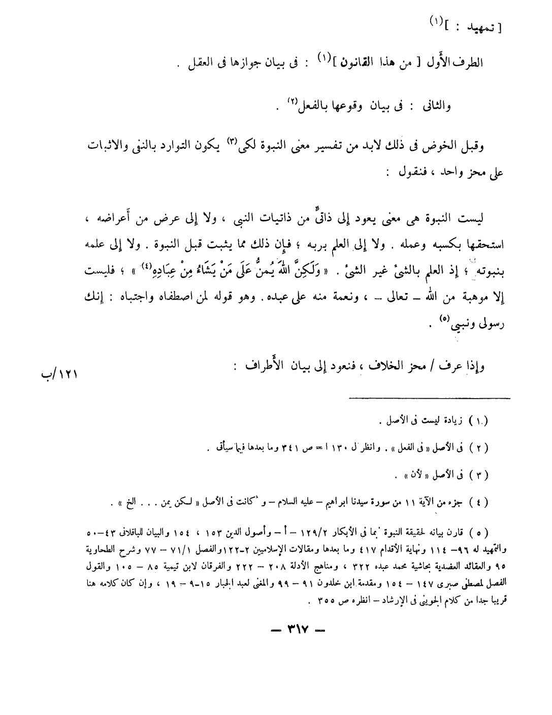 وَقبل الْخَوْض فى ذَلِك لَا بُد من تَفْسِير معنى النُّبُوَّة لكى يكون التوارد بالنفى والاثبات على محز وَاحِد فَنَقُول