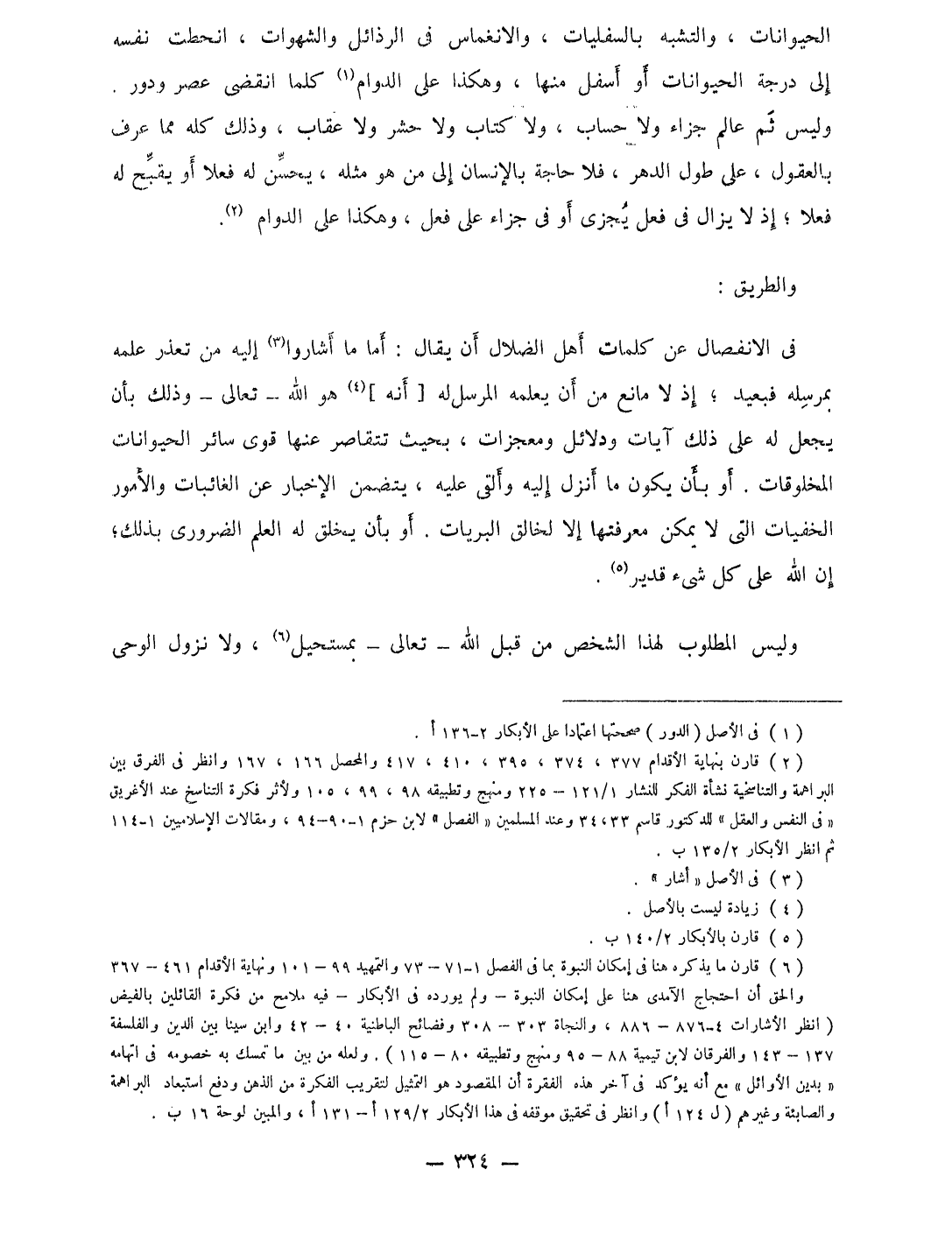 الْحَيَوَانَات والتشبه بالسفليات والانغماس فِي الرذائل والشهوات انحطت نَفسه إِلَى دَرَجَة الْحَيَوَانَات أَو أَسْفَل مِنْهَا وَهَكَذَا على الدَّوَام كلما انْقَضى عصر ودور وَلَيْسَ ثمَّ عَالم جَزَاء وَلَا حِسَاب وَلَا كتاب وَلَا حشر وَلَا عِقَاب وَذَلِكَ كُله مِمَّا عرف بالعقول على طول الدَّهْر فَلَا حَاجَة بالإنسان إِلَى من هُوَ مثله يحسن لَهُ فعلا أَو يقبح لَهُ فعلا إِذْ لَا يزَال فى فعل يجزى أَو فى جَزَاء على فعل وَهَكَذَا على الدَّوَام