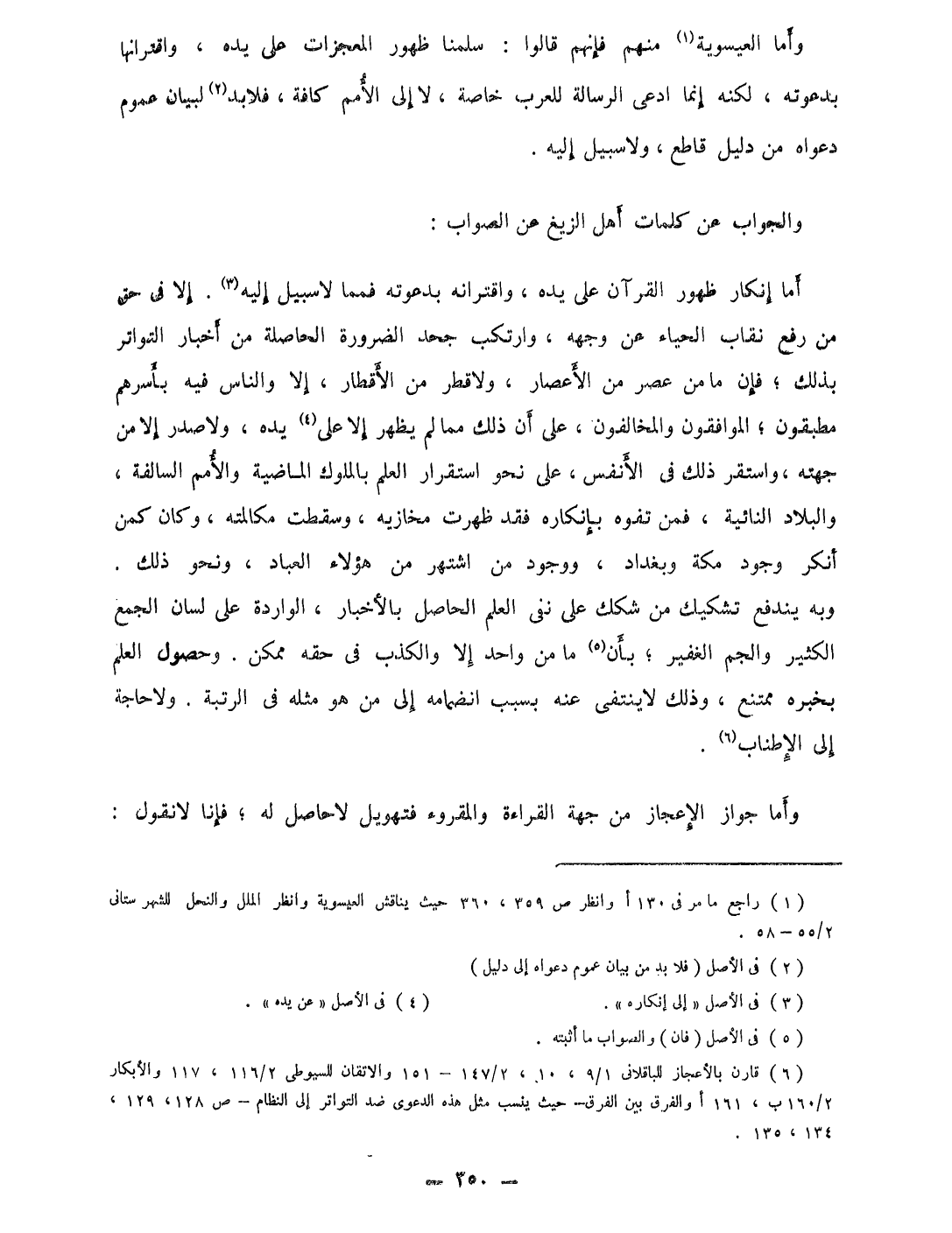 وَالْجَوَاب عَن كَلِمَات أهل الزيغ عَن الصَّوَاب