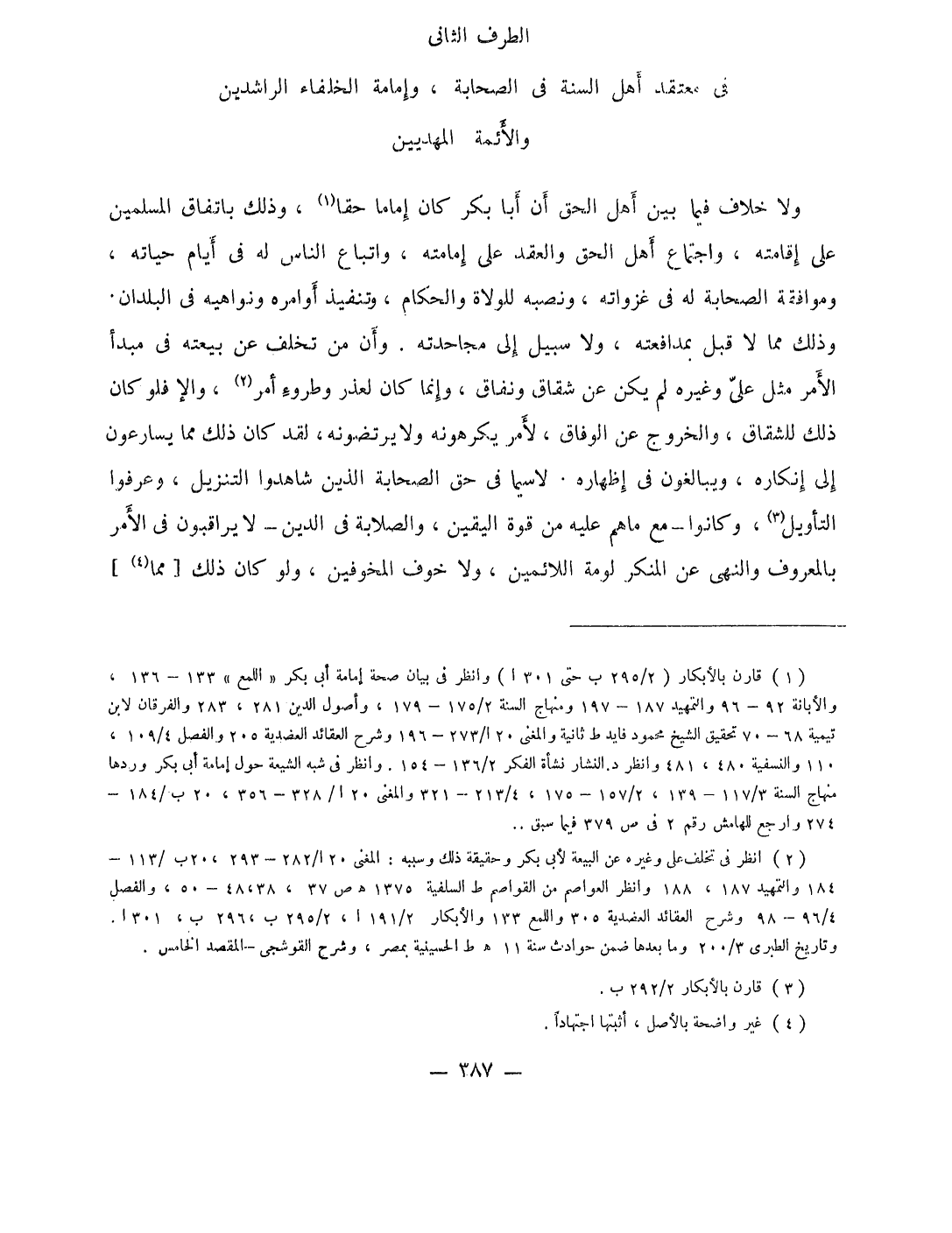 فى مُعْتَقد أهل السّنة فى الصَّحَابَة وإمامة الْخُلَفَاء الرَّاشِدين وَالْأَئِمَّة المهديين