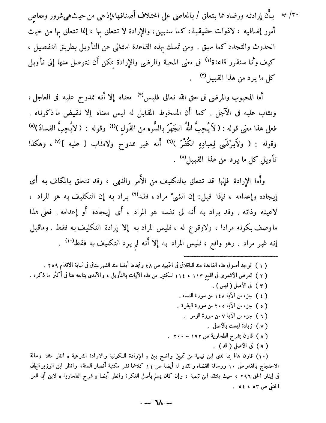 بِأَن إِرَادَته وَرضَاهُ مِمَّا يتَعَلَّق بالمعاصى على اخْتِلَاف أصنافها إِذْ هِيَ من حَيْثُ هِيَ شرور ومعاص امور إضافيه لَا ذَوَات حَقِيقِيَّة كَمَا سنبين والإرادة لَا تتَعَلَّق بهَا إِنَّمَا تتَعَلَّق بهَا من حَيْثُ الْحُدُوث والتجدد كَمَا سبق وَمن تمسك بِهَذِهِ الْقَاعِدَة اسْتغنى عَن التَّأْوِيل بطرِيق التَّفْصِيل كَيفَ وَأَنا سنقرر قَاعِدَة فِي معنى الْمحبَّة والرضى والإرادة يُمكن أَن نتوصل مِنْهَا إِلَى تَأْوِيل كل مَا يرد من هَذَا الْقَبِيل