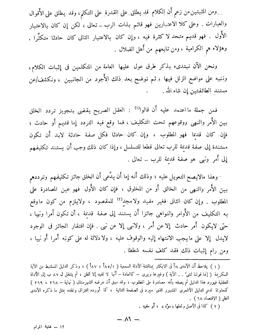 وَنحن الْآن نبتدئ بِذكر طرق عول عَلَيْهَا الْعَامَّة من الْمُتَكَلِّمين فِي إِثْبَات الْكَلَام وننبه على مَوَاضِع الزلل فِيهَا ثمَّ نوضح بعد ذَلِك الاجود من الْجَانِبَيْنِ ونكشف عَن مُسْتَند الطَّائِفَتَيْنِ إِن شَاءَ الله