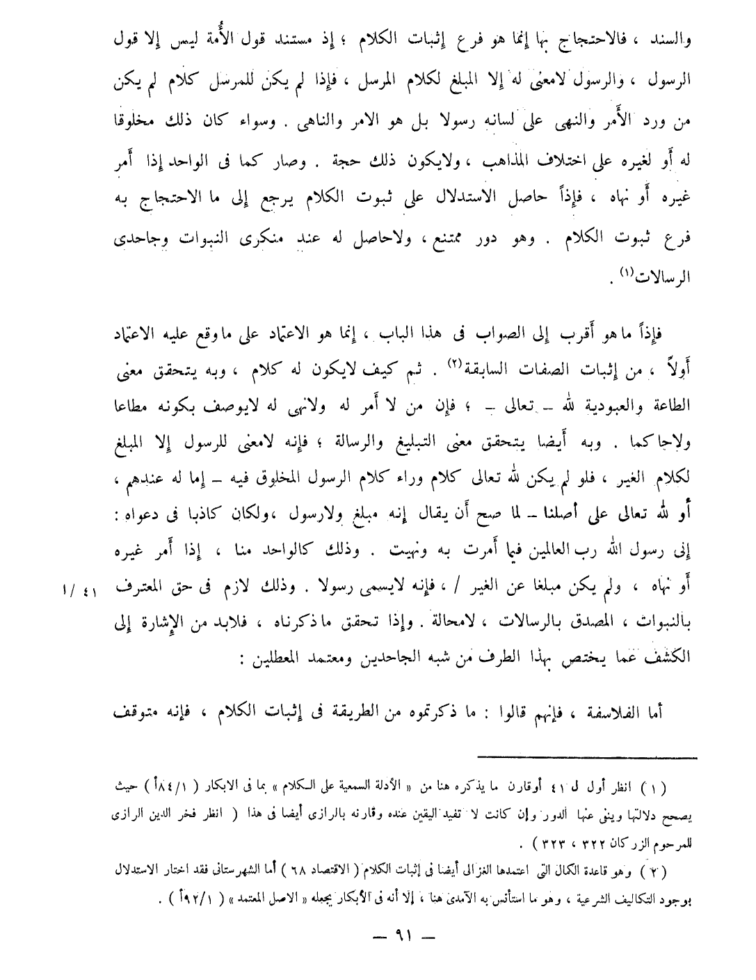 والسند فالأحتجاع بهَا إِنَّمَا هُوَ فرع إِثْبَات الْكَلَام إِذْ مُسْتَند قَول الْأمة لَيْسَ إِلَّا قَول الرَّسُول وَالرَّسُول لَا معنى لَهُ إِلَّا الْمبلغ لكَلَام الْمُرْسل فَإِذا لم يكن للمرسل كَلَام لم يكن من ورد الامر والنهى على لِسَانه رَسُولا بل هُوَ الْآمِر والناهى وَسَوَاء كَانَ ذَلِك مخلوقا لَهُ اَوْ لغيره على اخْتِلَاف الْمذَاهب وَلَا يكون ذَلِك حجَّة وَصَارَ كَمَا فِي الْوَاحِد إِذا أَمر غَيره أَو نَهَاهُ فَإِذا حَاصِل الأستدلال على ثُبُوت الْكَلَام يرجع إِلَى مَا الِاحْتِجَاج بِهِ فرع ثُبُوت الْكَلَام وَهُوَ دور مُمْتَنع وَلَا حَاصِل لَهُ عِنْد منكرى النبوات وجاحدى الرسالات