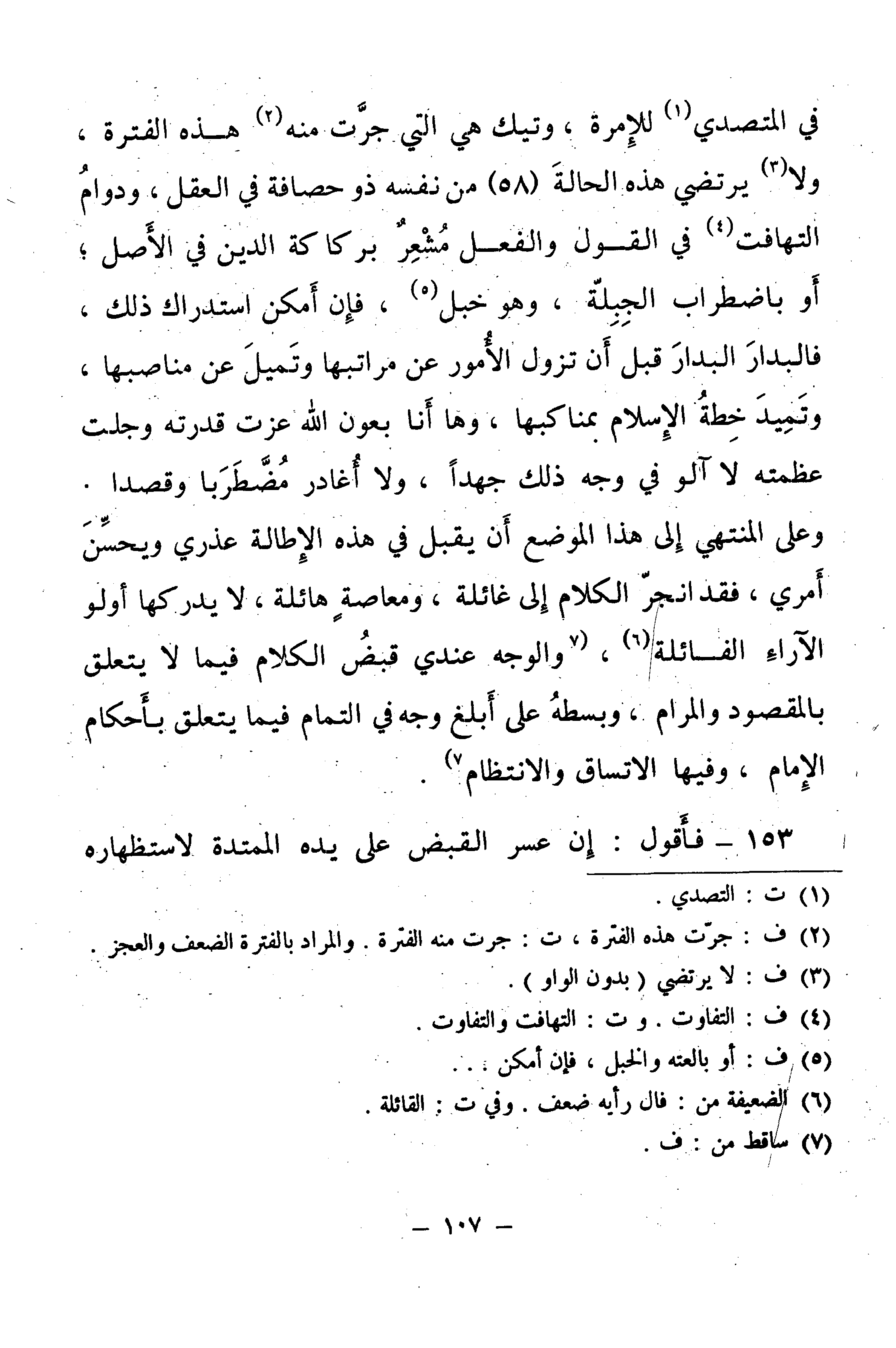 153 - فَأَقُولُ: إِنْ عَسُرَ الْقَبْضُ عَلَى يَدِهِ الْمُمْتَدَّةِ لِاسْتِظْهَارِهِ