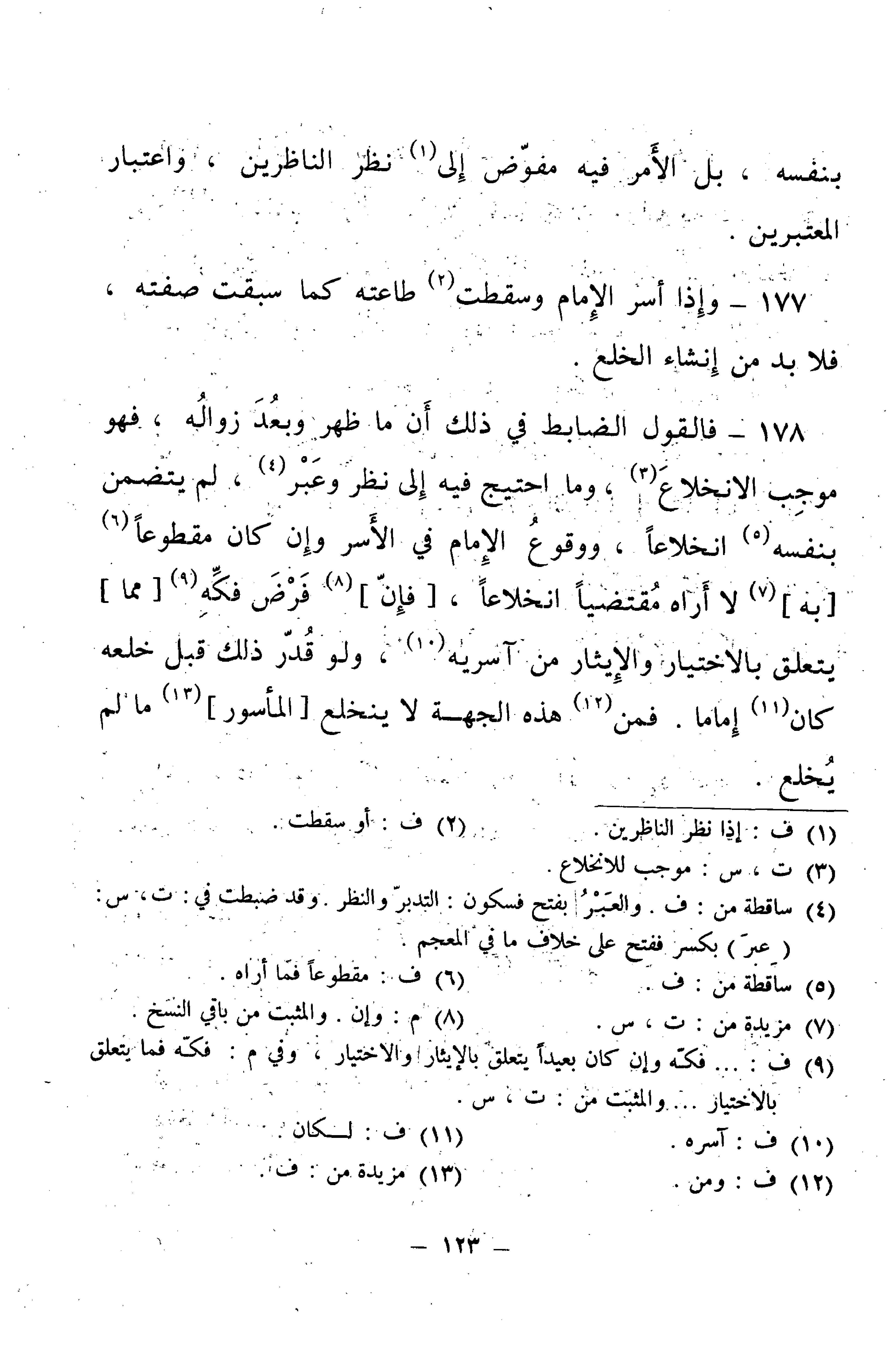 177 - وَإِذَا أُسِرَ الْإِمَامُ وَسَقَطَتْ طَاعَتُهُ كَمَا سَبَقَتْ صِفَتُهُ، فَلَا بُدَّ مِنْ إِنْشَاءِ الْخَلْعِ.