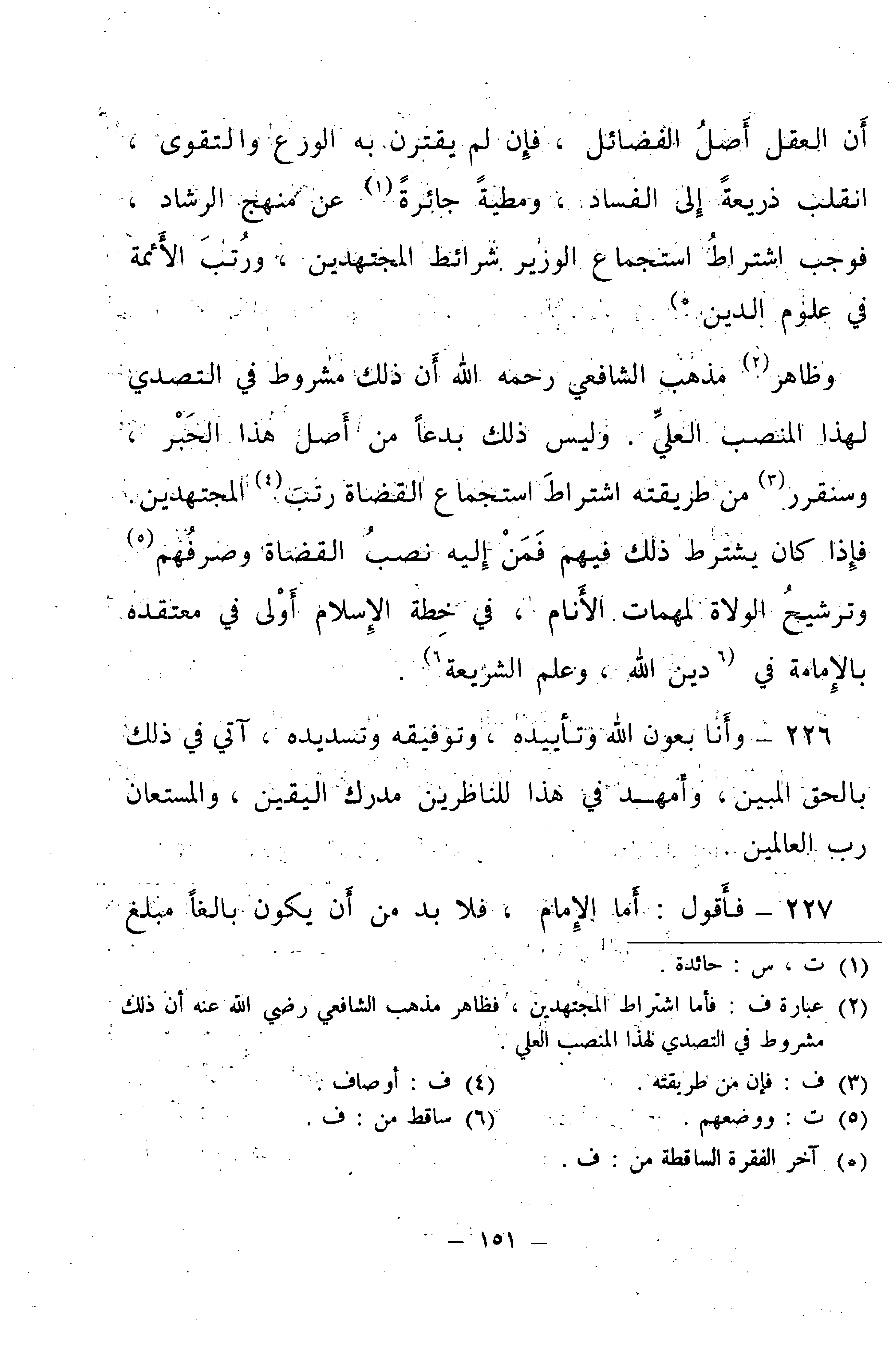 226 - وَأَنَا بِعَوْنِ اللَّهِ وَتَأْيِيدِهِ، وَتَوْفِيقِهِ وَتَسْدِيدِهِ، آتٍ فِي ذَلِكَ بِالْحَقِّ الْمُبِينِ، وَأُمَهِّدُ فِي هَذَا لِلنَّاظِرِينَ مَدْرَكَ الْيَقِينِ، وَالْمُسْتَعَانُ رَبُّ الْعَالَمِينَ.