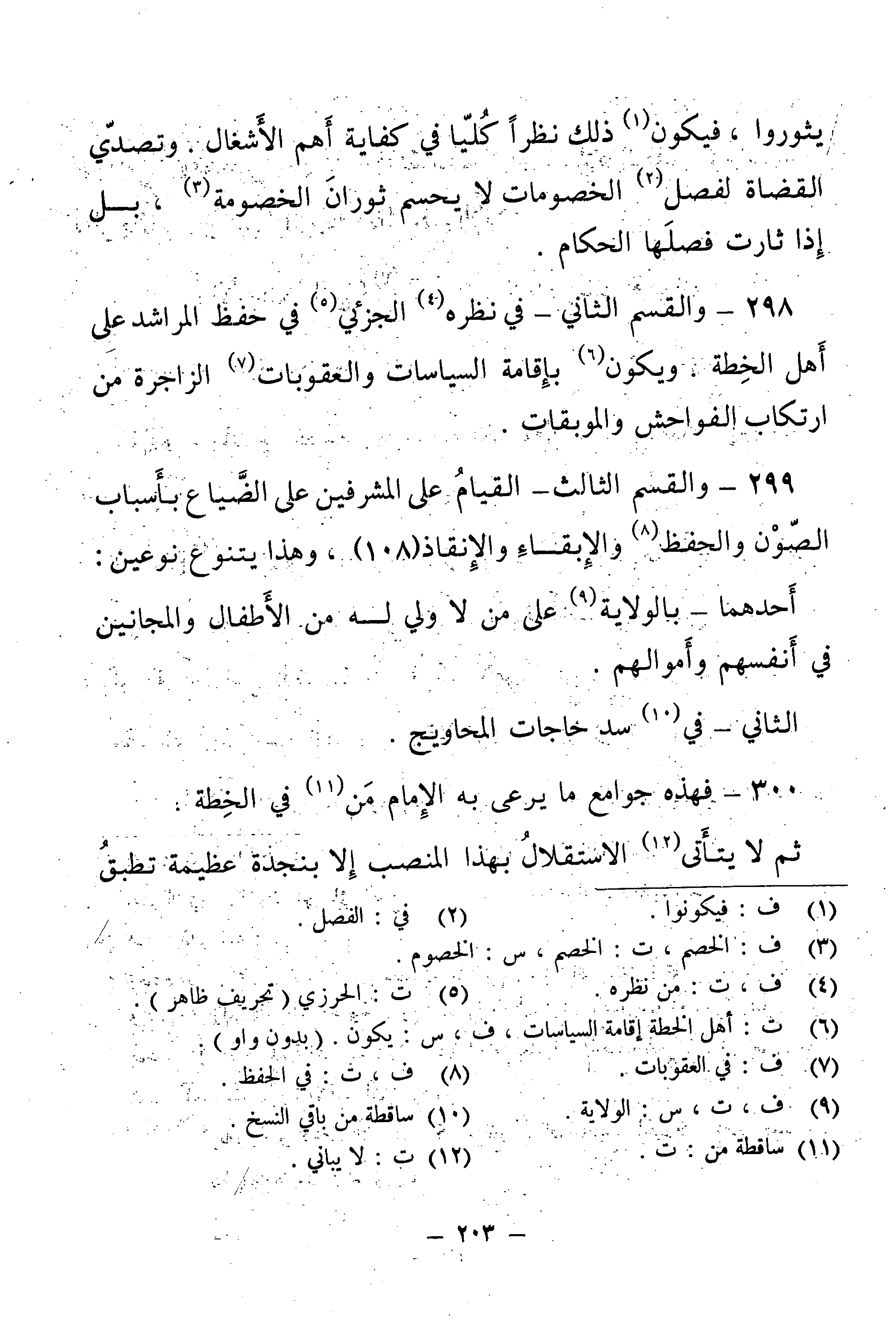 300 - فَهَذِهِ جَوَامِعُ مَا يَرْعَى بِهِ الْإِمَامُ مَنْ فِي الْخِطَّةِ.