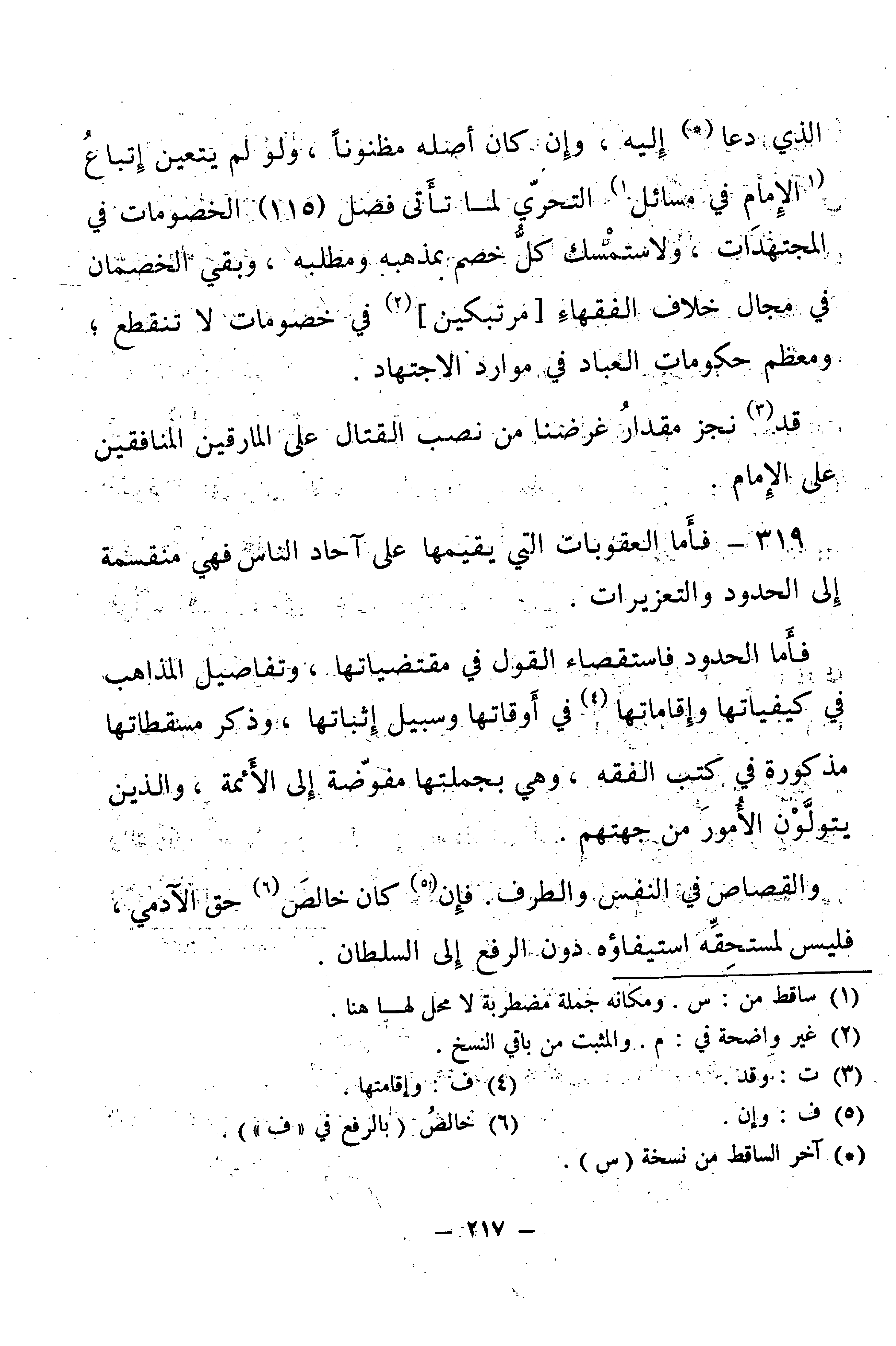 319 - فَأَمَّا الْعُقُوبَاتُ الَّتِي يُقِيمُهَا عَلَى آحَادِ النَّاسِ فَهِيَ مُنْقَسِمَةٌ إِلَى الْحُدُودِ وَالتَّعْزِيرَاتِ.