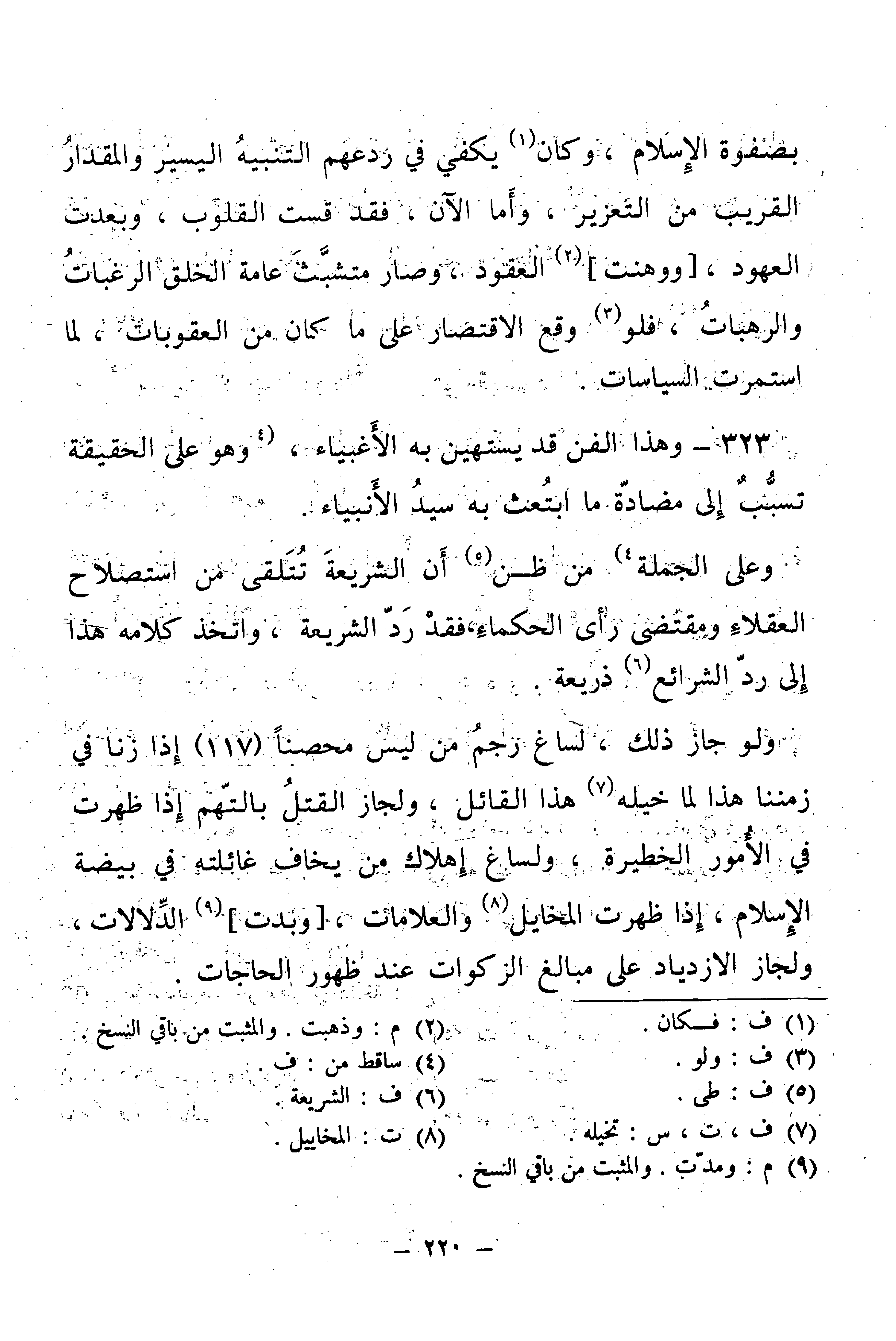 323 - وَهَذَا الْفَنُّ قَدْ يَسْتَهِينُ بِهِ الْأَغْبِيَاءُ، وَهُوَ عَلَى الْحَقِيقَةِ تَسَبُّبٌ إِلَى مُضَادَّةِ مَا ابْتُعِثَ بِهِ سَيِّدُ الْأَنْبِيَاءِ.