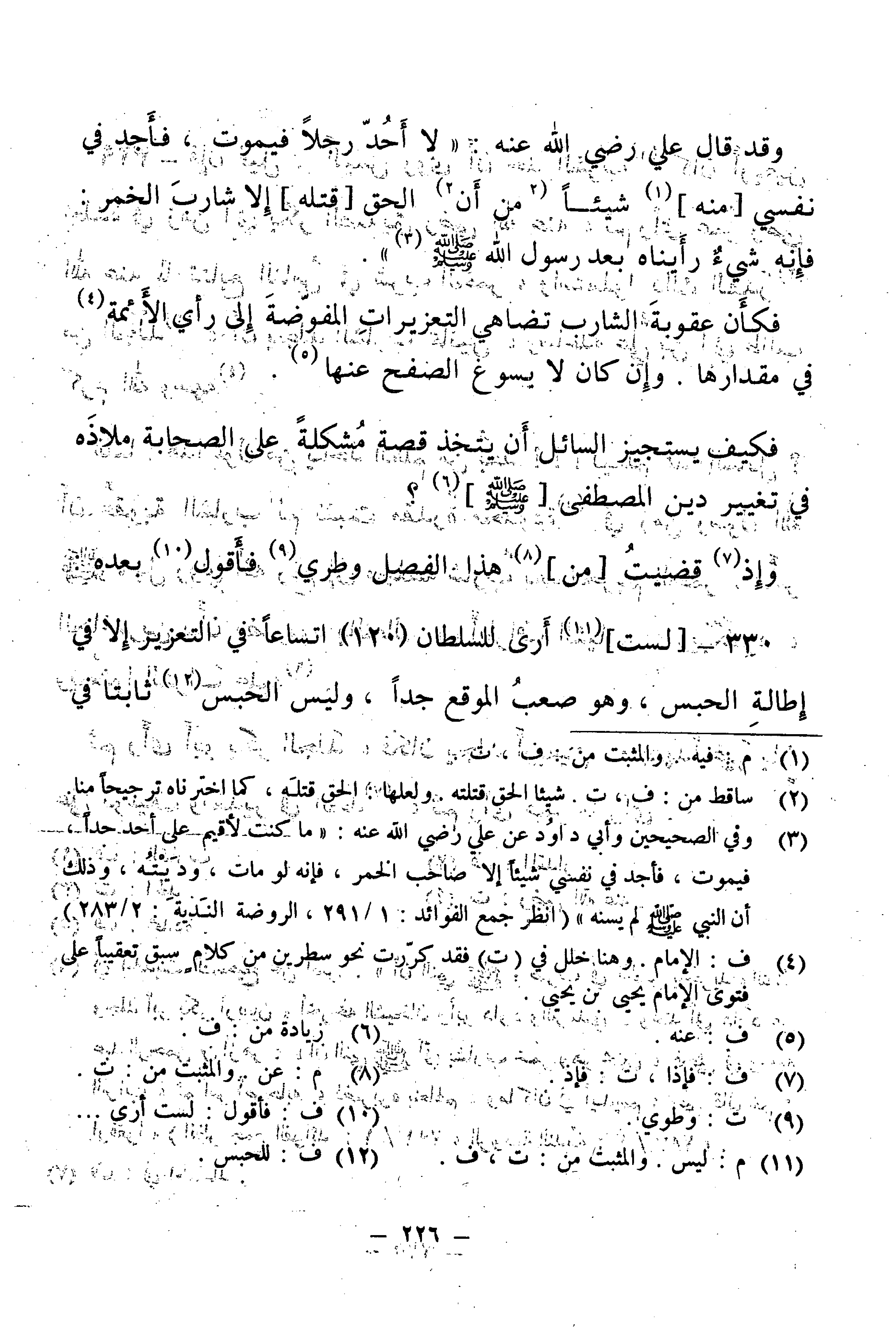 فَكَأَنَّ عُقُوبَةَ الشَّارِبِ تُضَاهِي التَّعْزِيرَاتِ الْمُفَوَّضَةَ إِلَى رَأْيِ الْأَئِمَّةِ فِي مِقْدَارِهَا. وَإِنْ كَانَ لَا يَسُوغُ الصَّفْحُ عَنْهَا.