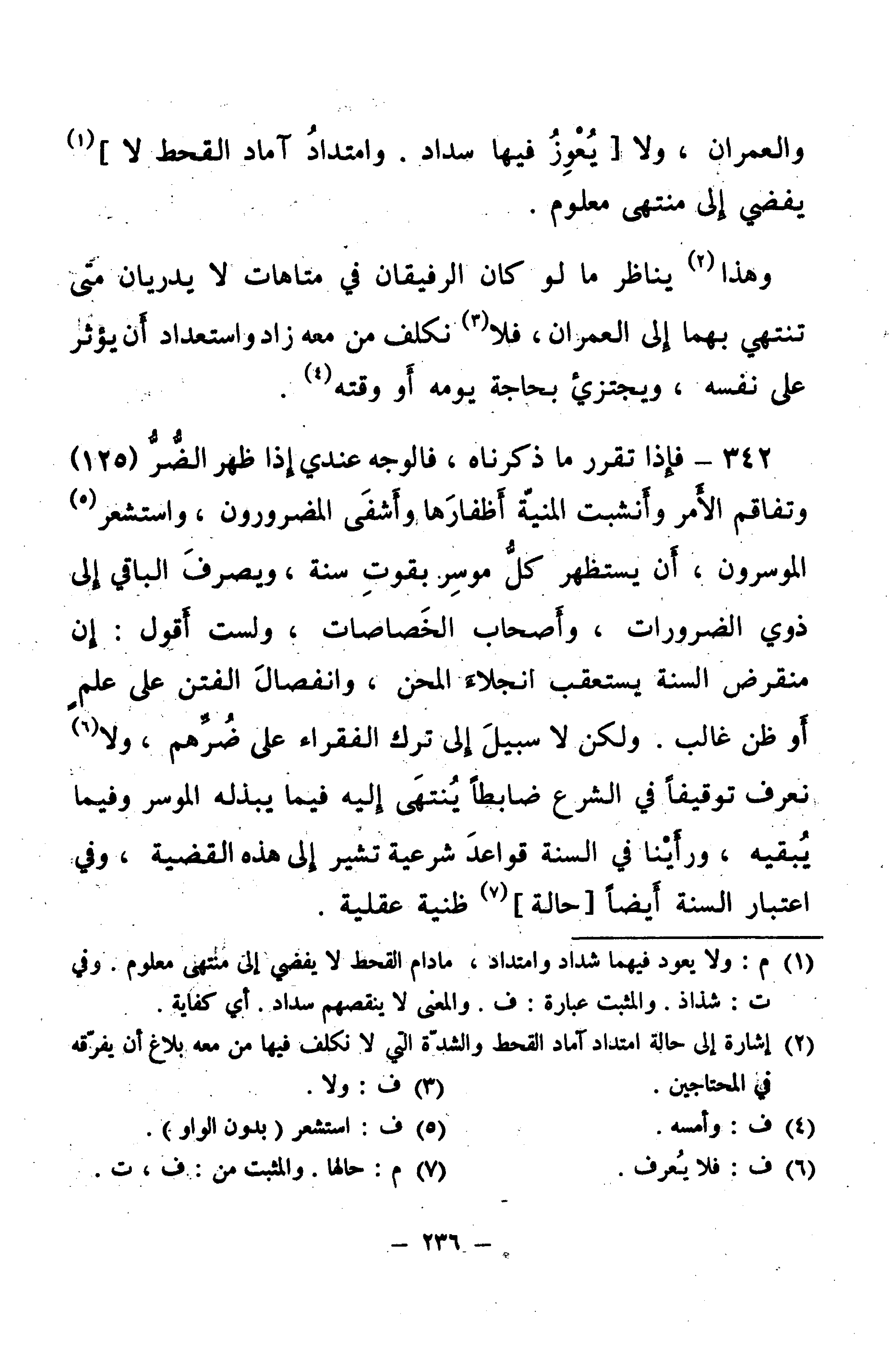 وَالْعُمْرَانِ، وَلَا يُعْوِزُ فِيهَا سَدَادٌ. وَامْتِدَادُ آمَادِ الْقَحْطِ لَا يُفْضِي إِلَى مُنْتَهَى الْعُلُومِ.