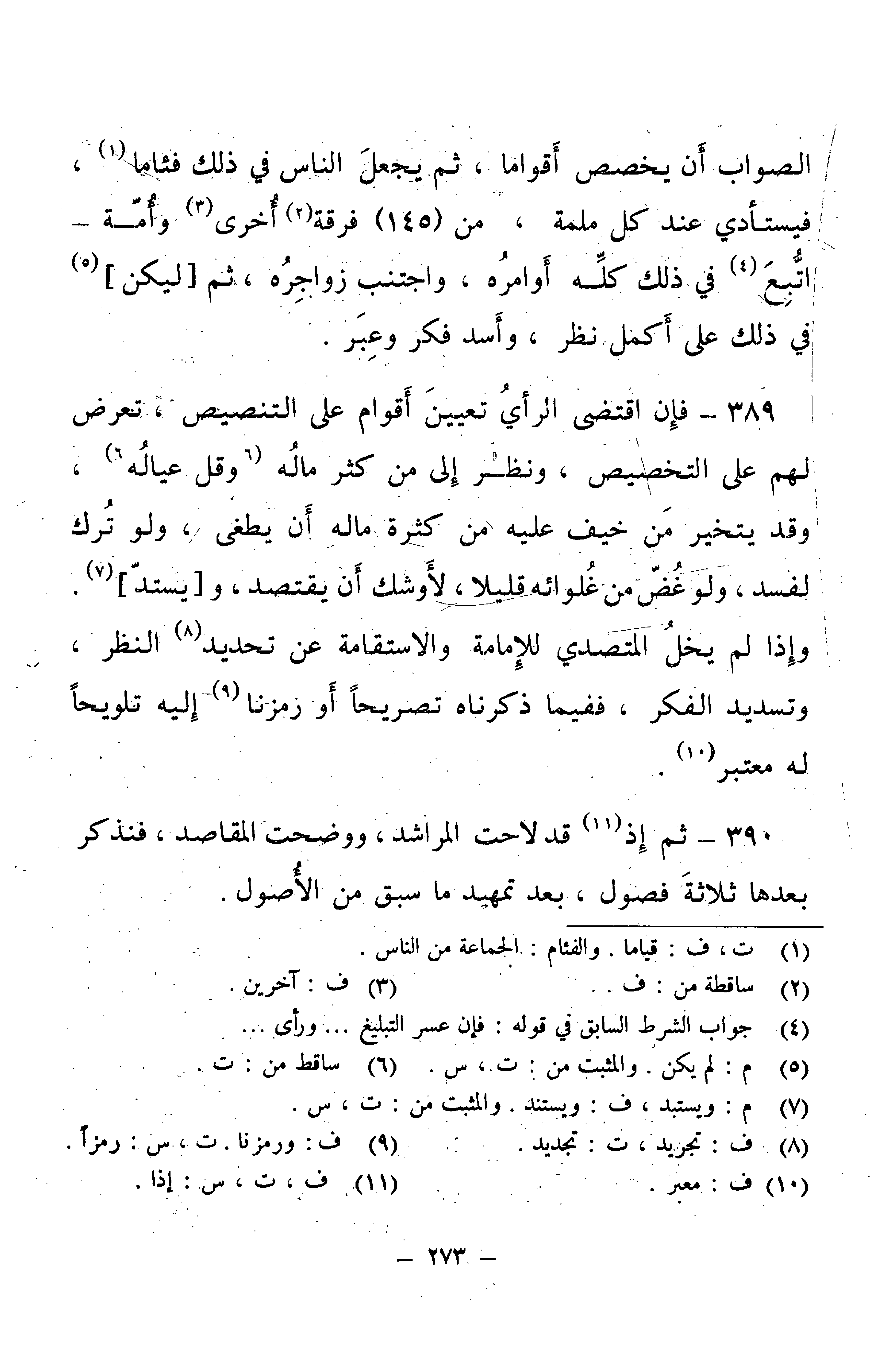 390 - ثُمَّ إِذْ قَدْ لَاحَتِ الْمَرَاشِدُ، وَوَضَحَتِ الْمَقَاصِدُ، فَنَذْكُرُ بَعْدَهَا ثَلَاثَةَ فُصُولٍ، بَعْدَ تَمْهِيدِ مَا سَبَقَ مِنَ الْأُصُولِ.