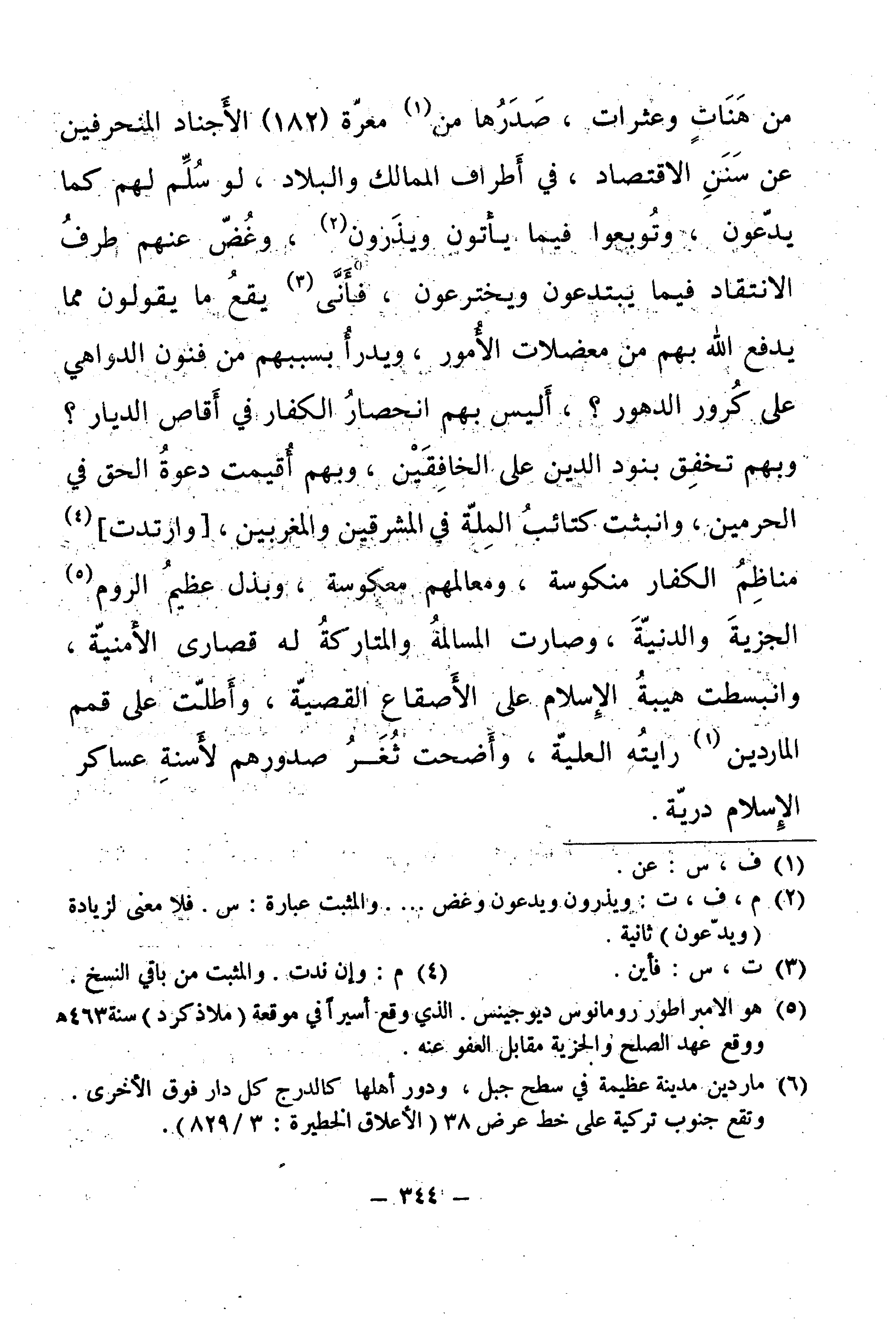 مِنْ هَنَاتٍ وَعَثَرَاتٍ، صَدَرُهَا عَنْ مَعَرَّةِ (182) الْأَجْنَادِ الْمُنْحَرِفِينَ عَنْ سُنَنِ الِاقْتِصَادِ، فِي أَطْرَافِ الْمَمَالِكِ وَالْبِلَادِ.