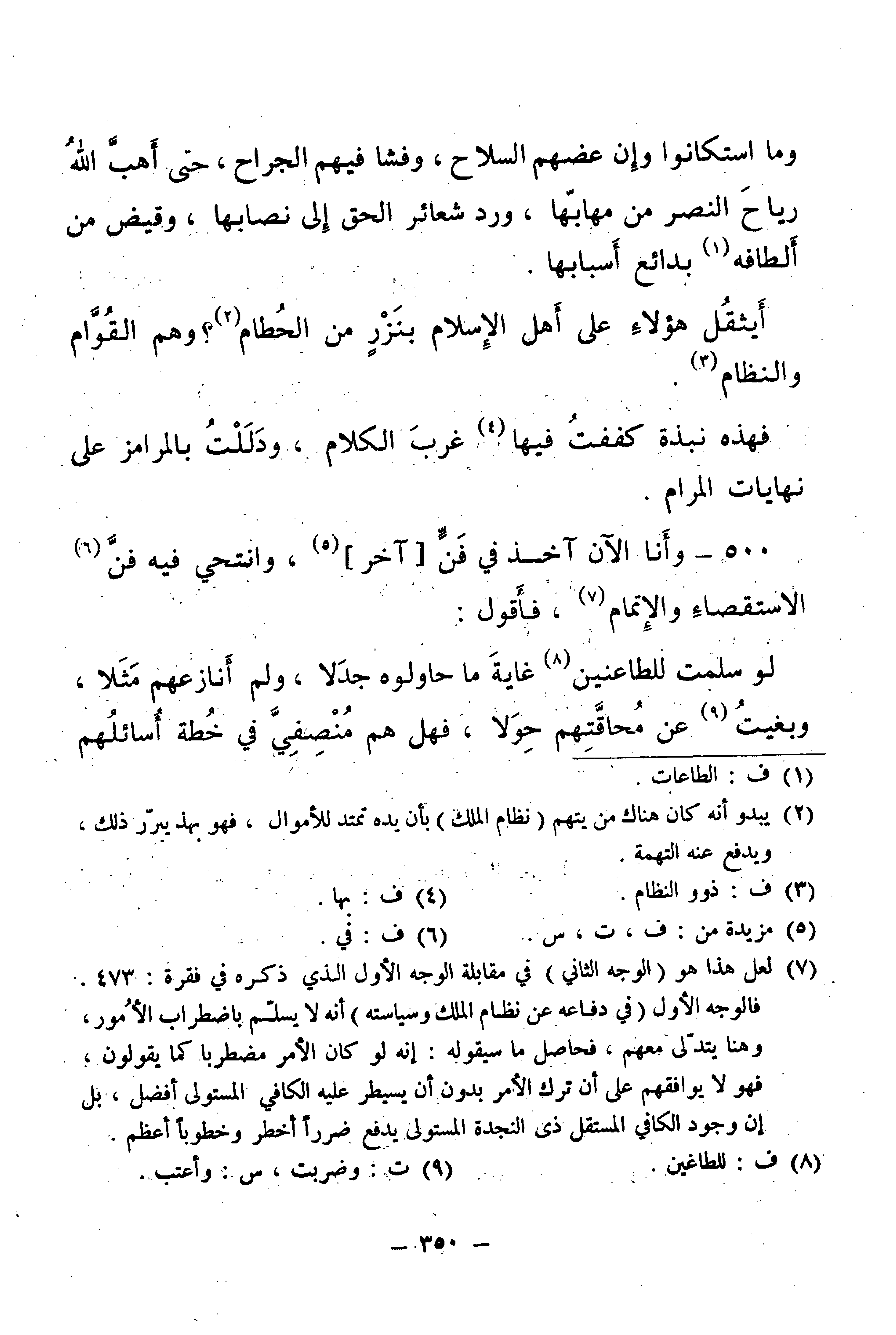 500 - وَالْآنَ آخُذُ فِي فَنٍّ [آخَرَ] وَأَنْتَحِي فِيهِ فَنَّ الِاسْتِقْصَاءَ وَالْإِتْمَامَ، فَأَقُولُ: