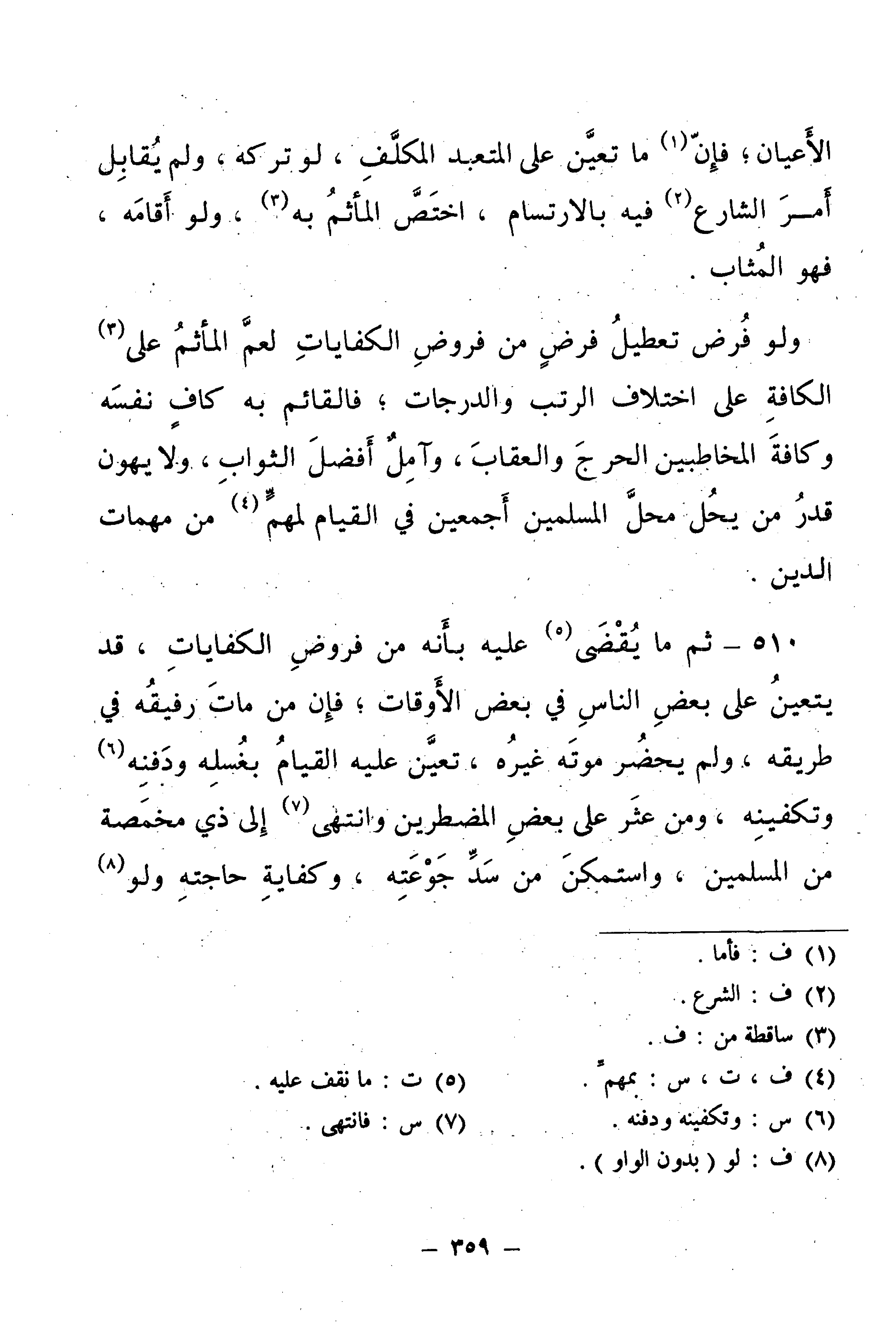 510 - ثُمَّ مَا يُقْضَى عَلَيْهِ بِأَنَّهُ مِنْ فُرُوضِ الْكِفَايَاتِ، قَدْ يَتَعَيَّنُ عَلَى بَعْضِ النَّاسِ فِي بَعْضِ الْأَوْقَاتِ، فَإِنَّ مَنْ مَاتَ رَفِيقُهُ فِي طَرِيقِهِ، وَلَمْ يَحْضُرْ مَوْتَهُ غَيْرُهُ، تَعَيَّنَ عَلَيْهِ الْقِيَامُ بِغَسْلِهِ وَدَفْنِهِ وَتَكْفِينِهِ.