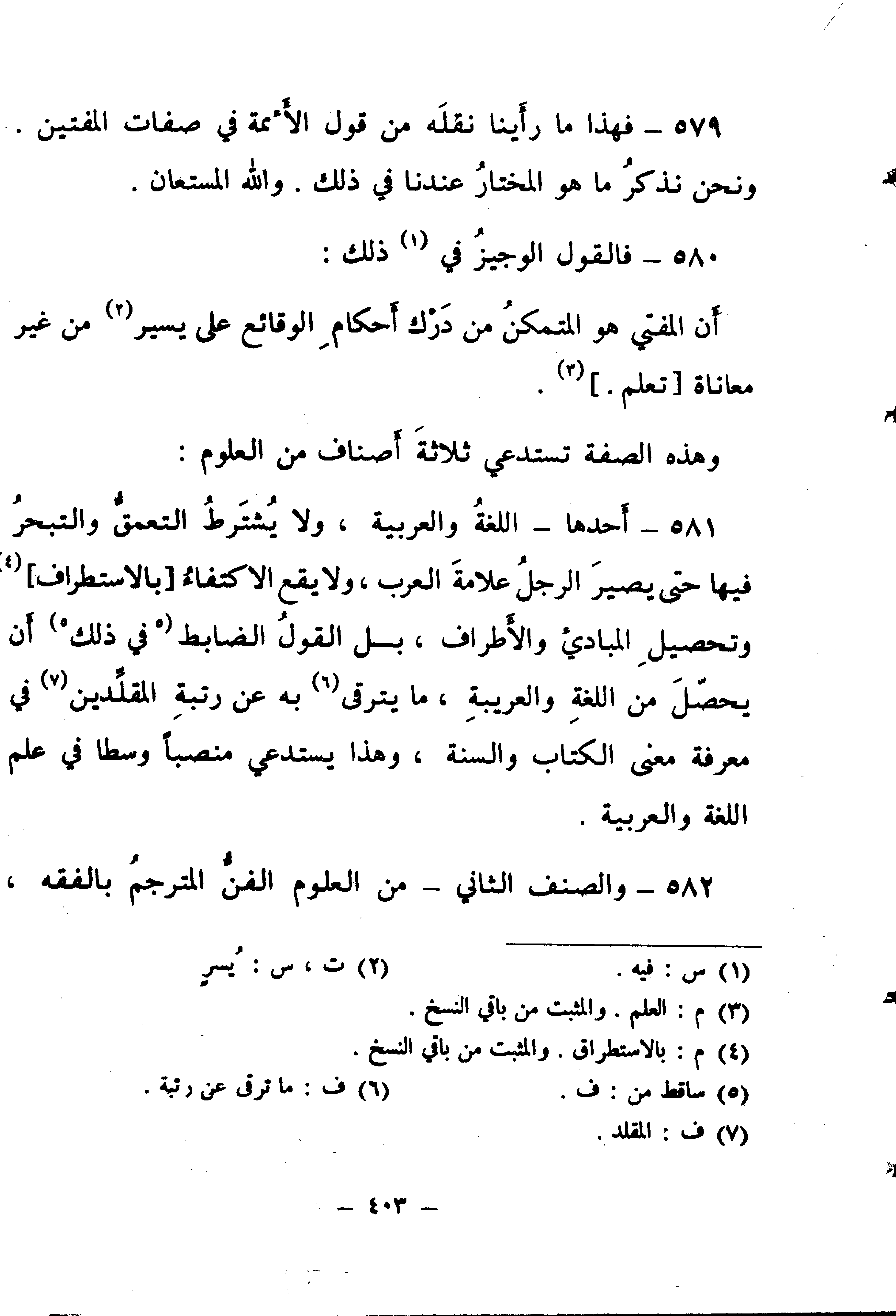 579 - فَهَذَا مَا رَأَيْنَا نَقْلَهُ مِنْ قَوْلِ الْأَئِمَّةِ فِي صِفَاتِ الْمُفْتِينَ وَنَحْنُ نَذْكُرُ مَا هُوَ الْمُخْتَارُ عِنْدَنَا فِي ذَلِكَ. وَاللَّهُ الْمُسْتَعَانُ.