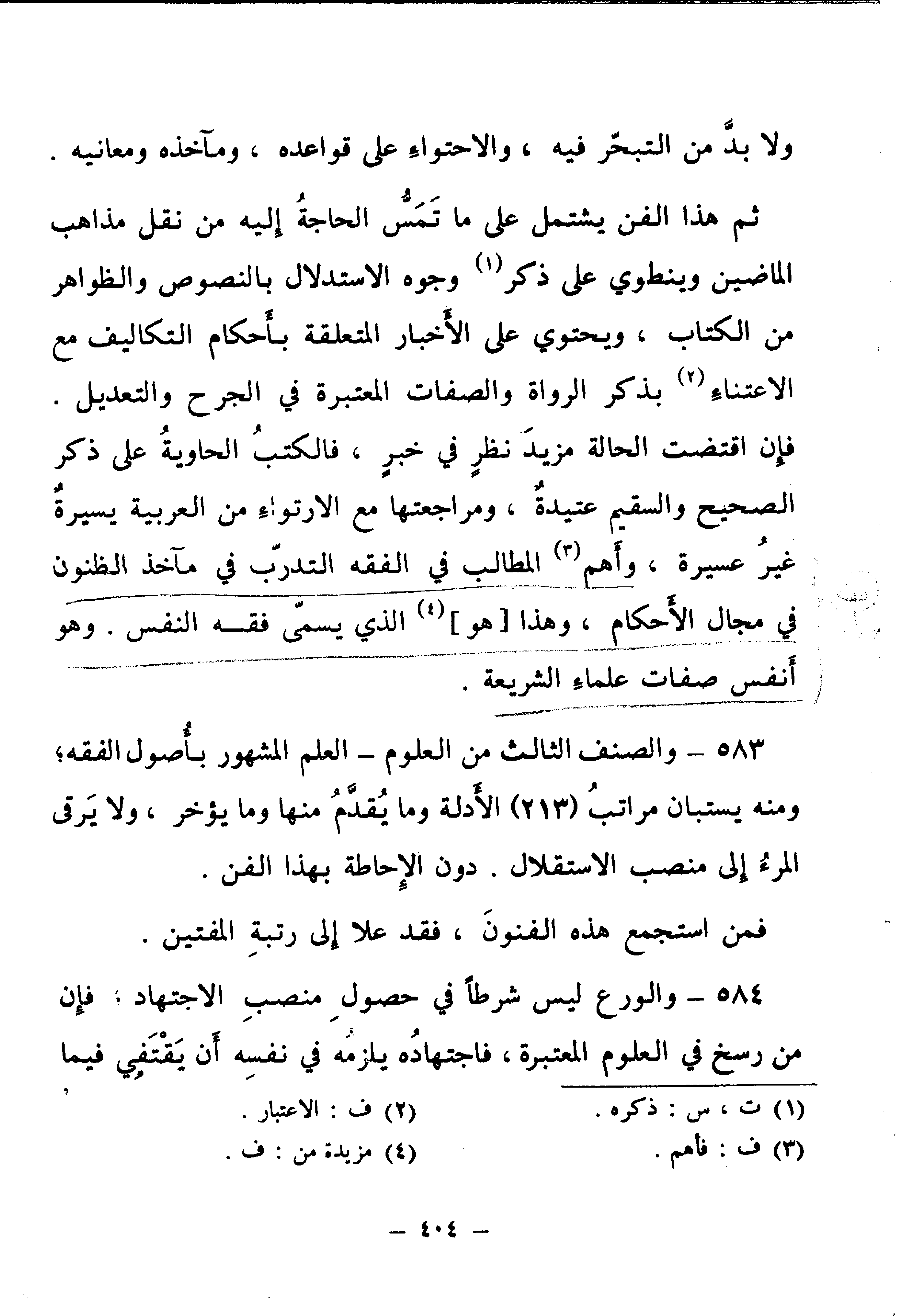 583 - وَالصِّنْفُ الثَّالِثُ مِنَ الْعُلُومِ - الْعِلْمُ الْمَشْهُورُ بِأُصُولِ الْفِقْهِ، وَمِنْهُ يُسْتَبَانُ مَرَاتِبُ (213) الْأَدِلَّةِ وَمَا يُقَدَّمُ مِنْهَا وَمَا يُؤَخَّرُ، وَلَا يَرْقَى الْمَرْءُ إِلَى مَنْصِبِ الِاسْتِقْلَالِ.