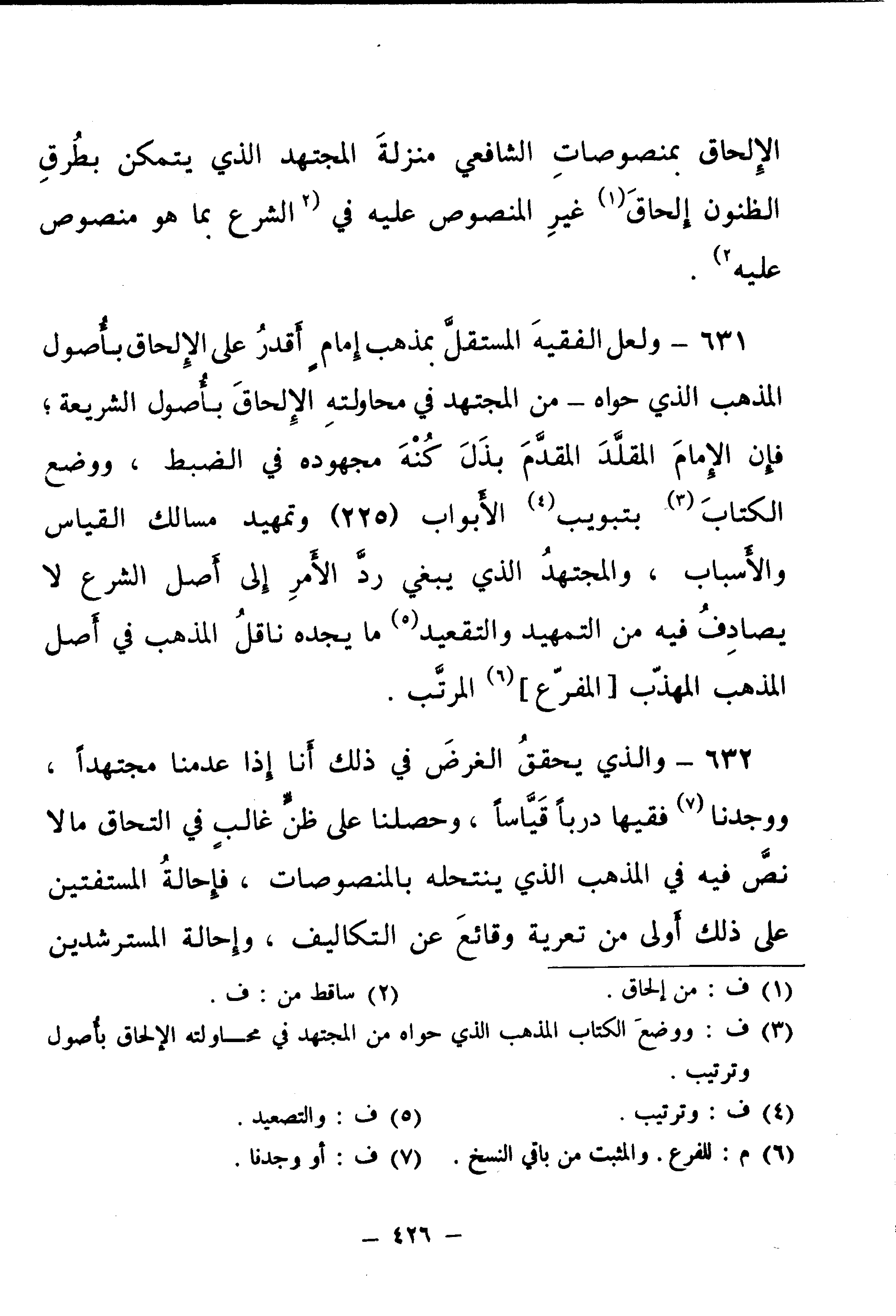 631 - وَلَعَلَّ الْفَقِيهَ الْمُسْتَقِلَّ بِمَذْهَبِ إِمَامٍ أَقْدَرُ عَلَى الْإِلْحَاقِ بِأُصُولِ الْمَذْهَبِ الَّذِي حَوَاهُ - مِنَ الْمُجْتَهِدِ فِي مُحَاوَلَتِهِ الْإِلْحَاقَ بِأُصُولِ الشَّرِيعَةِ ; فَإِنَّ الْإِمَامَ الْمُقَلِّدَ الْمُقَدَّمَ بَذَلَ كُنْهَ مَجْهُودِهِ فِي الضَّبْطِ، وَوَضَعَ الْكِتَابَ بِتَبْوِيبِ الْأَبْوَابِ (225) وَتَمْهِيدِ مَسَالِكِ الْقِيَاسِ وَالْأَسْبَابِ، وَالْمُجْتَهِدَ الَّذِي يَبْغِي رَدَّ الْأَمْرِ إِلَى أَصْلِ الشَّرْعِ لَا يُصَادِفُ فِيهِ مِنَ التَّمْهِيدِ وَالتَّقْعِيدِ مَا يَجِدُهُ نَاقِلُ الْمَذْهَبِ فِي أَصْلِ الْمَذْهَبِ الْمُهَذَّبِ [الْمُفَرَّعِ] الْمُرَتَّبِ.