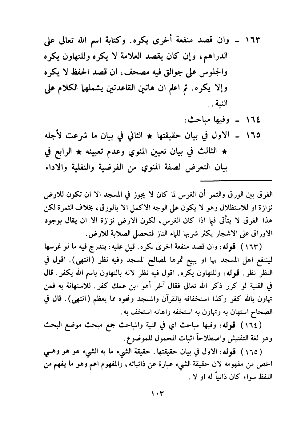 ثُمَّ اعْلَمْ أَنَّ هَاتَيْنِ الْقَاعِدَتَيْنِ يَشْمَلُهُمَا الْكَلَامُ عَلَى النِّيَّةِ. 164 -