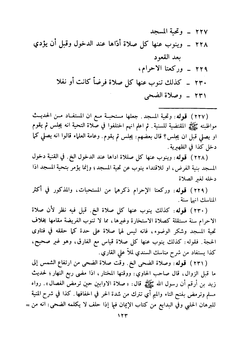 229 - وَرَكْعَتَا الْإِحْرَامِ، 230 - كَذَلِكَ تَنُوبُ عَنْهَا كُلُّ صَلَاةٍ فَرْضًا كَانَتْ أَوْ نَفْلًا. 231 - وَصَلَاةُ الضُّحَى