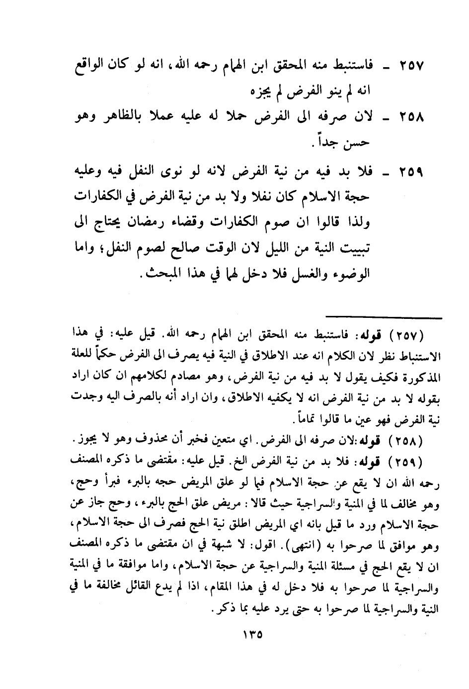 فَاسْتَنْبَطَ مِنْهُ الْمُحَقِّقُ ابْنُ الْهُمَامِ - رَحِمَهُ اللَّهُ -، أَنَّهُ لَوْ كَانَ الْوَاقِعُ أَنَّهُ لَمْ يَنْوِ الْفَرْضَ لَمْ يُجْزِهِ. 258 -