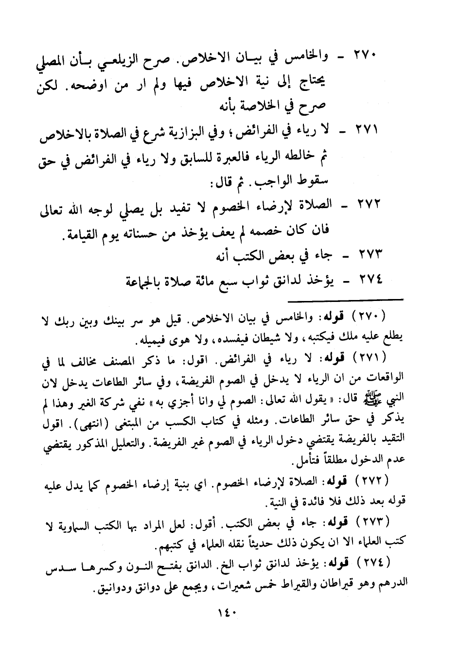 ثُمَّ قَالَ: 272 - الصَّلَاةُ لِإِرْضَاءِ الْخُصُومِ لَا تُفِيدُ بَلْ يُصَلِّي لِوَجْهِ اللَّهِ تَعَالَى فَإِنْ كَانَ خَصْمَهُ لَمْ يَعْفُ يُؤْخَذُ مِنْ حَسَنَاتِهِ يَوْمَ الْقِيَامَةِ. 273 - جَاءَ فِي بَعْضِ الْكُتُبِ أَنَّهُ 274 - يُؤْخَذُ لِدَانَقٍ ثَوَابُ سَبْعِ مِائَةِ صَلَاةٍ بِالْجَمَاعَةِ