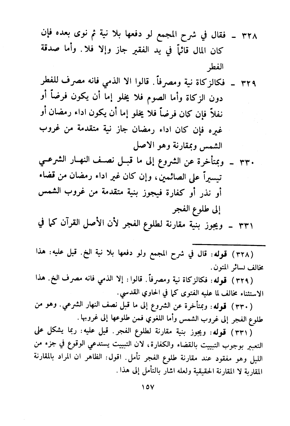328 - فَقَالَ فِي شَرْحِ الْمَجْمَعِ لَوْ دَفَعَهَا بِلَا نِيَّةٍ، ثُمَّ نَوَى بَعْدَهُ، فَإِنْ كَانَ الْمَالُ قَائِمًا فِي يَدِ الْفَقِيرِ جَازَ، وَإِلَّا، فَلَا،