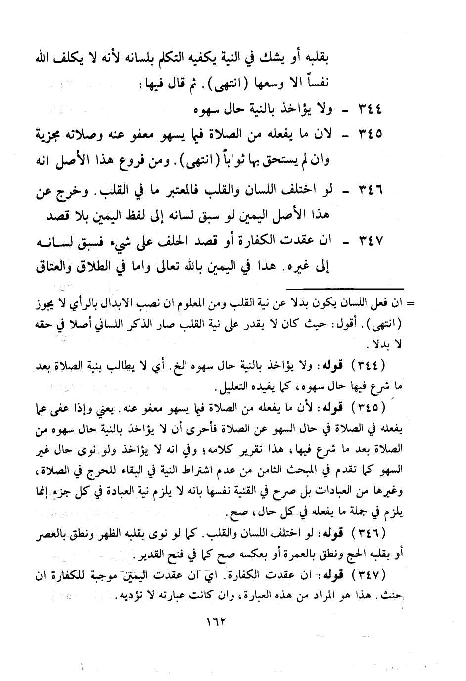 ، ثُمَّ قَالَ فِيهَا 344 -: وَلَا يُؤَاخَذُ بِالنِّيَّةِ حَالَ سَهْوِهِ 345 -؛ لِأَنَّ مَا يَفْعَلُهُ مِنْ الصَّلَاةِ فِيمَا يَسْهُو مَعْفُوٌّ عَنْهُ وَصَلَاتُهُ مُجْزِيَةٌ، وَإِنْ لَمْ يَسْتَحِقَّ بِهَا ثَوَابًا (انْتَهَى) .