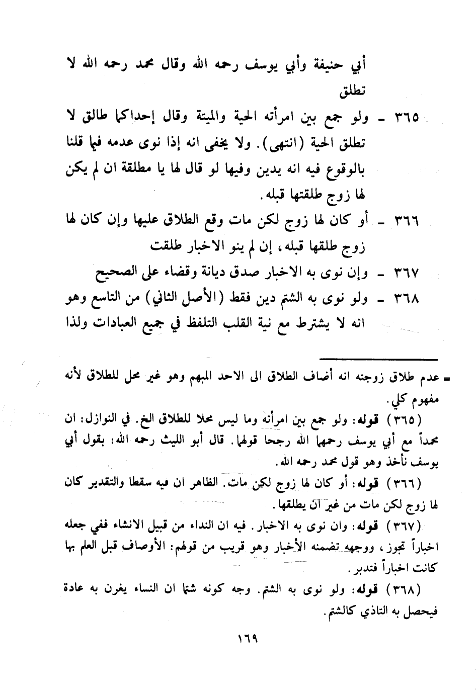 أَبِي حَنِيفَةَ وَأَبِي يُوسُفَ - رَحِمَهُ اللَّهُ -، وَقَالَ مُحَمَّدٌ - رَحِمَهُ اللَّهُ -: لَا تَطْلُقُ 365 - وَلَوْ جَمَعَ بَيْنَ امْرَأَتِهِ الْحَيَّةِ، وَالْمَيِّتَةِ، وَقَالَ: إحْدَاكُمَا طَالِقٌ لَا تَطْلُقُ الْحَيَّةُ (انْتَهَى) ، وَلَا يَخْفَى أَنَّهُ إذَا نَوَى عَدَمَهُ فِيمَا قُلْنَا بِالْوُقُوعِ فِيهِ أَنَّهُ يُدَيَّنُ.