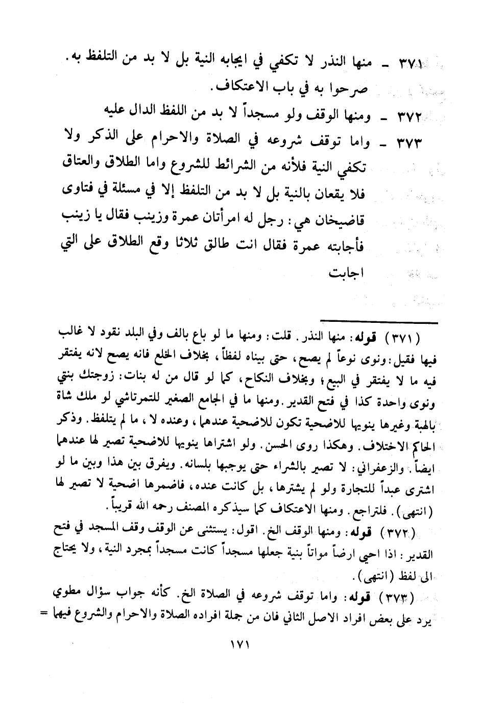 372 - وَمِنْهَا الْوَقْفُ وَلَوْ مَسْجِدًا لَا بُدَّ مِنْ اللَّفْظِ الدَّالِّ عَلَيْهِ.