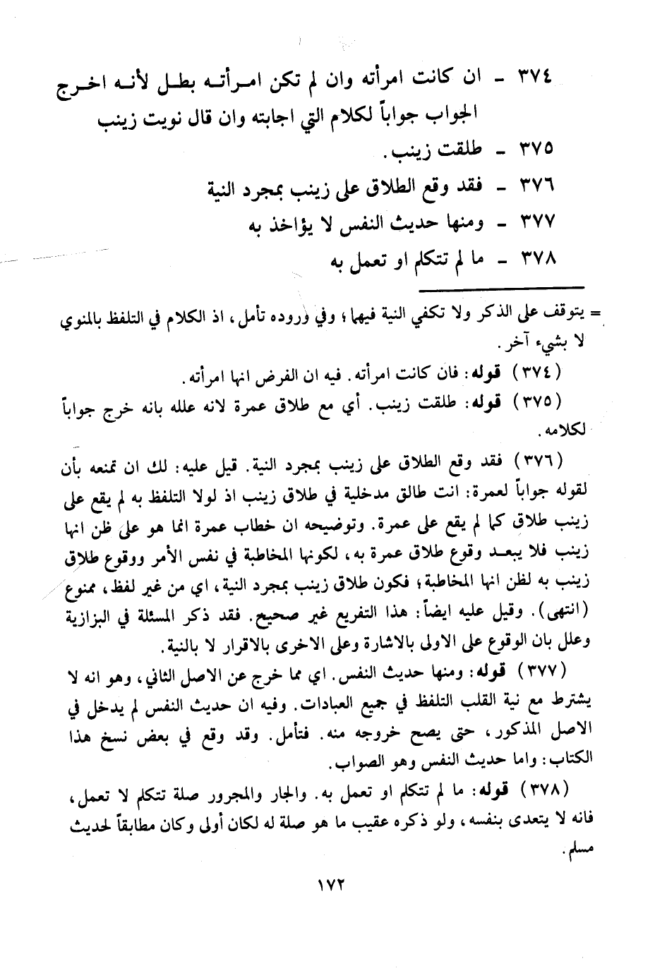 377 - وَمِنْهَا حَدِيثُ النَّفْسِ لَا يُؤَاخَذُ بِهِ 378 - مَا لَمْ تَتَكَلَّمْ، أَوْ تَعْمَلْ بِهِ