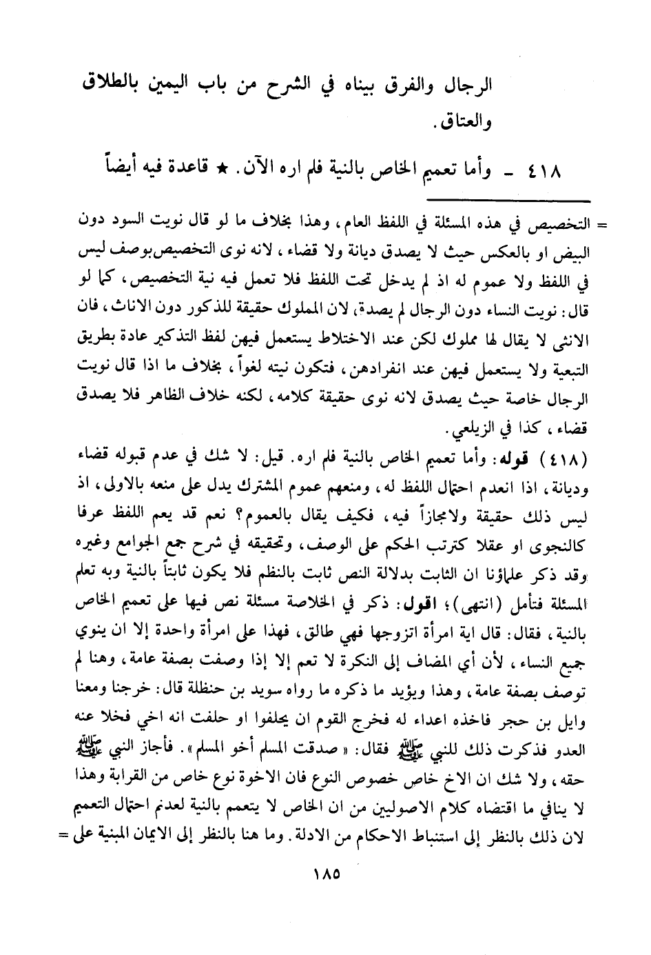 418 - وَأَمَّا تَعْمِيمُ الْخَاصِّ بِالنِّيَّةِ فَلَمْ أَرَهُ الْآنَ. قَاعِدَةٌ فِيهِ أَيْضًا