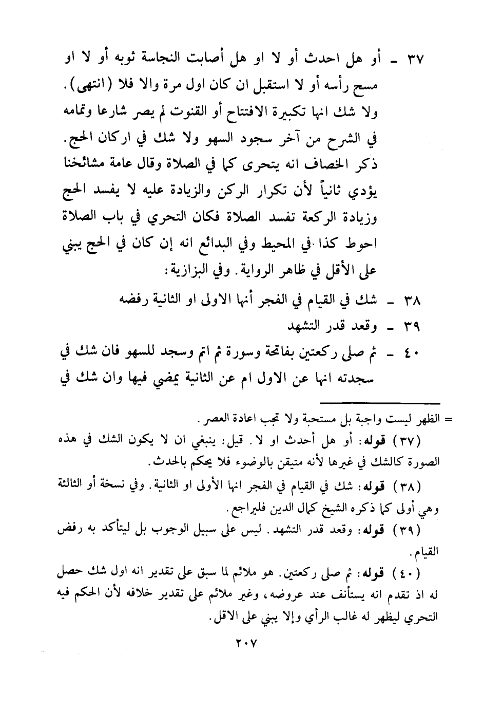 (37) قَوْلُهُ: أَوْ هَلْ أَحْدَثَ، أَوْ لَا، قِيلَ: يَنْبَغِي أَنْ لَا يَكُونَ الشَّكُّ فِي هَذِهِ الصُّورَةِ كَالشَّكِّ فِي غَيْرِهَا؛ لِأَنَّهُ مُتَيَقِّنٌ بِالْوُضُوءِ فَلَا يَحْكُمُ بِالْحَدَثِ