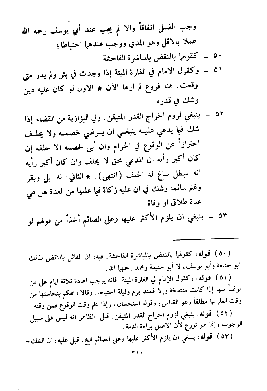 (52) قَوْلُهُ: يَنْبَغِي لُزُومُ إخْرَاجِ الْقَدْرِ الْمُتَيَقَّنِ، قِيلَ: الظَّاهِرُ أَنَّهُ لَيْسَ عَلَى سَبِيلِ الْوُجُوبِ، وَإِنَّمَا هُوَ تَوَرُّعٌ؛ لِأَنَّ الْأَصْلَ بَرَاءَةُ الذِّمَّةِ