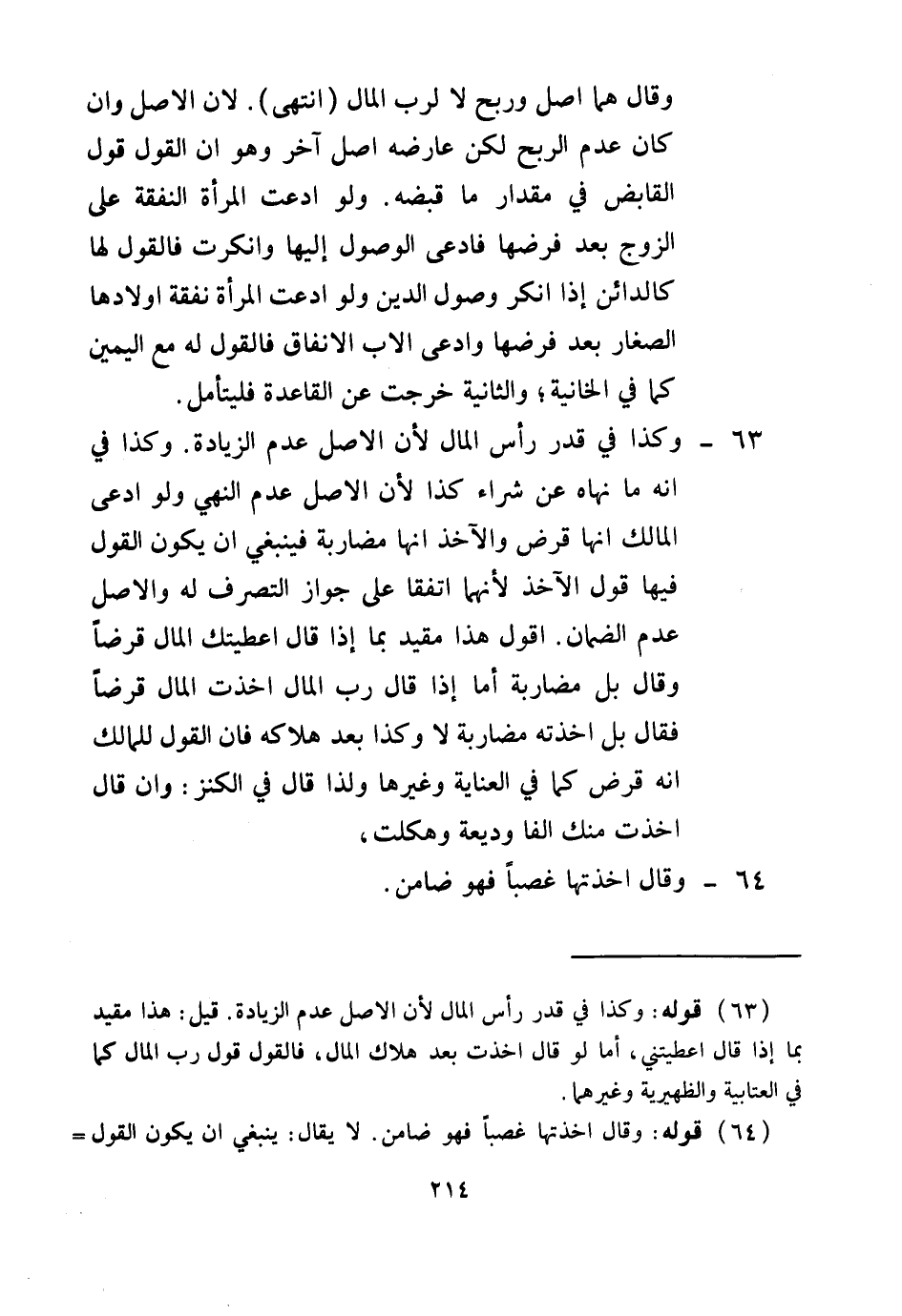63 - وَكَذَا فِي قَدْرِ رَأْسِ الْمَالِ؛ لِأَنَّ الْأَصْلَ عَدَمُ الزِّيَادَةِ، وَكَذَا فِي أَنَّهُ مَا نَهَاهُ عَنْ شِرَاءِ كَذَا؛ لِأَنَّ الْأَصْلَ عَدَمُ النَّهْيِ.