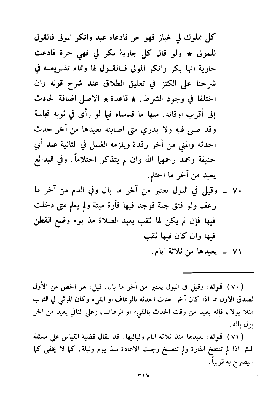 وَفِي الْبَدَائِعِ يُعِيدُ مِنْ آخِرِ مَا احْتَلَمَ. 70 - وَقِيلَ فِي الْبَوْلِ يَعْتَبِرُ مِنْ آخِرِ مَا بَالَ، وَفِي الدَّمِ مِنْ آخِرِ مَا رَعَفَ.