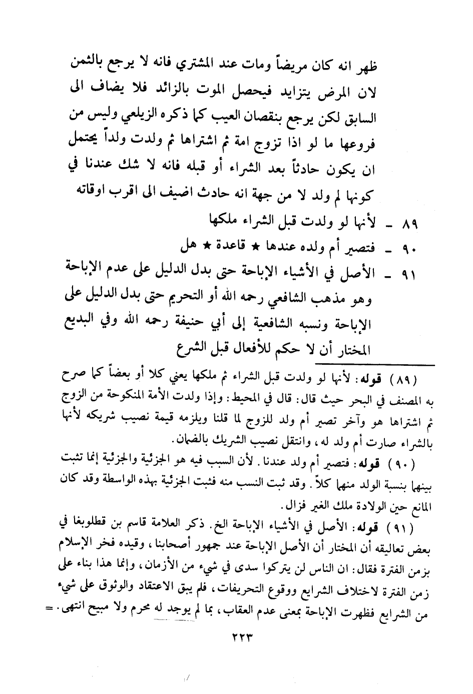 قَاعِدَةٌ هَلْ 91 - الْأَصْلُ فِي الْأَشْيَاءِ الْإِبَاحَةُ حَتَّى يَدُلَّ الدَّلِيلُ عَلَى عَدَمِ الْإِبَاحَةِ، وَهُوَ مَذْهَبُ الشَّافِعِيِّ - رَحِمَهُ اللَّهُ -، أَوْ التَّحْرِيمُ حَتَّى يَدُلَّ الدَّلِيلُ عَلَى الْإِبَاحَةِ وَنَسَبَهُ الشَّافِعِيَّةُ إلَى أَبِي حَنِيفَةَ - رَحِمَهُ اللَّهُ - وَفِي الْبَدِيعِ الْمُخْتَارِ أَنْ لَا حُكْمَ لِلْأَفْعَالِ قَبْلَ الشَّرْعِ
