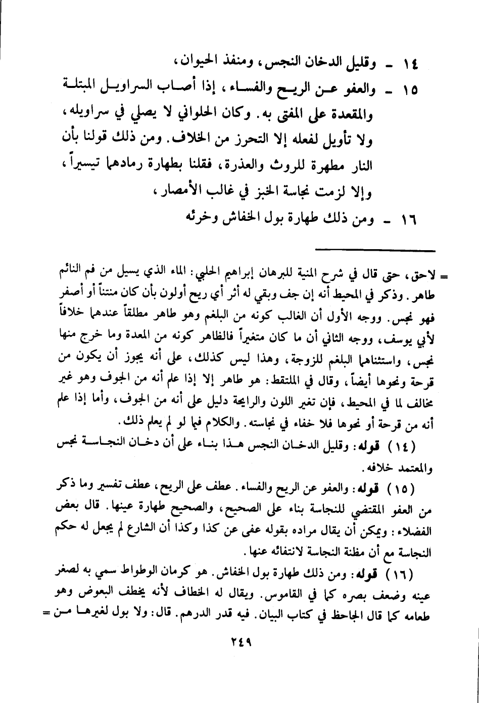 16 - وَمِنْ ذَلِكَ طَهَارَةُ بَوْلِ الْخُفَّاشِ وَخُرْئِهِ