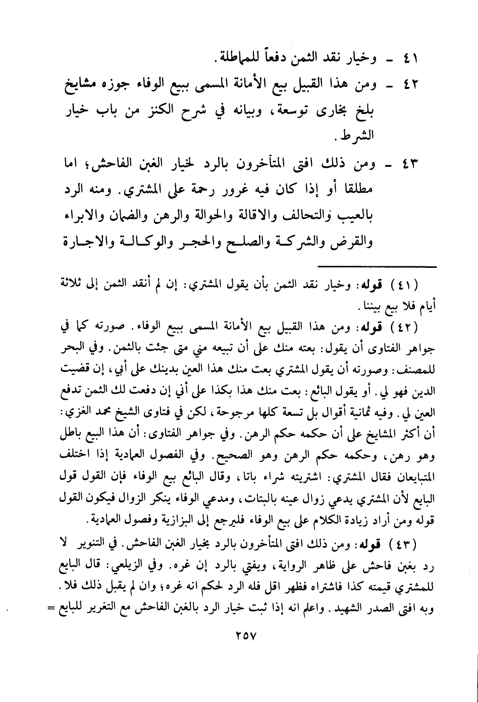 وَخِيَارُ نَقْدِ الثَّمَنِ دَفْعًا لِلْمُمَاطَلَةِ. 42 - وَمِنْ هَذَا الْقَبِيلِ بَيْعُ الْأَمَانَةِ الْمُسَمَّى بِبَيْعِ الْوَفَاءِ جَوَّزَهُ مَشَايِخُ بَلْخِ بُخَارَى تَوْسِعَةً، وَبَيَانُهُ فِي شَرْحِ الْكَنْزِ مِنْ بَابِ خِيَارِ الشَّرْطِ