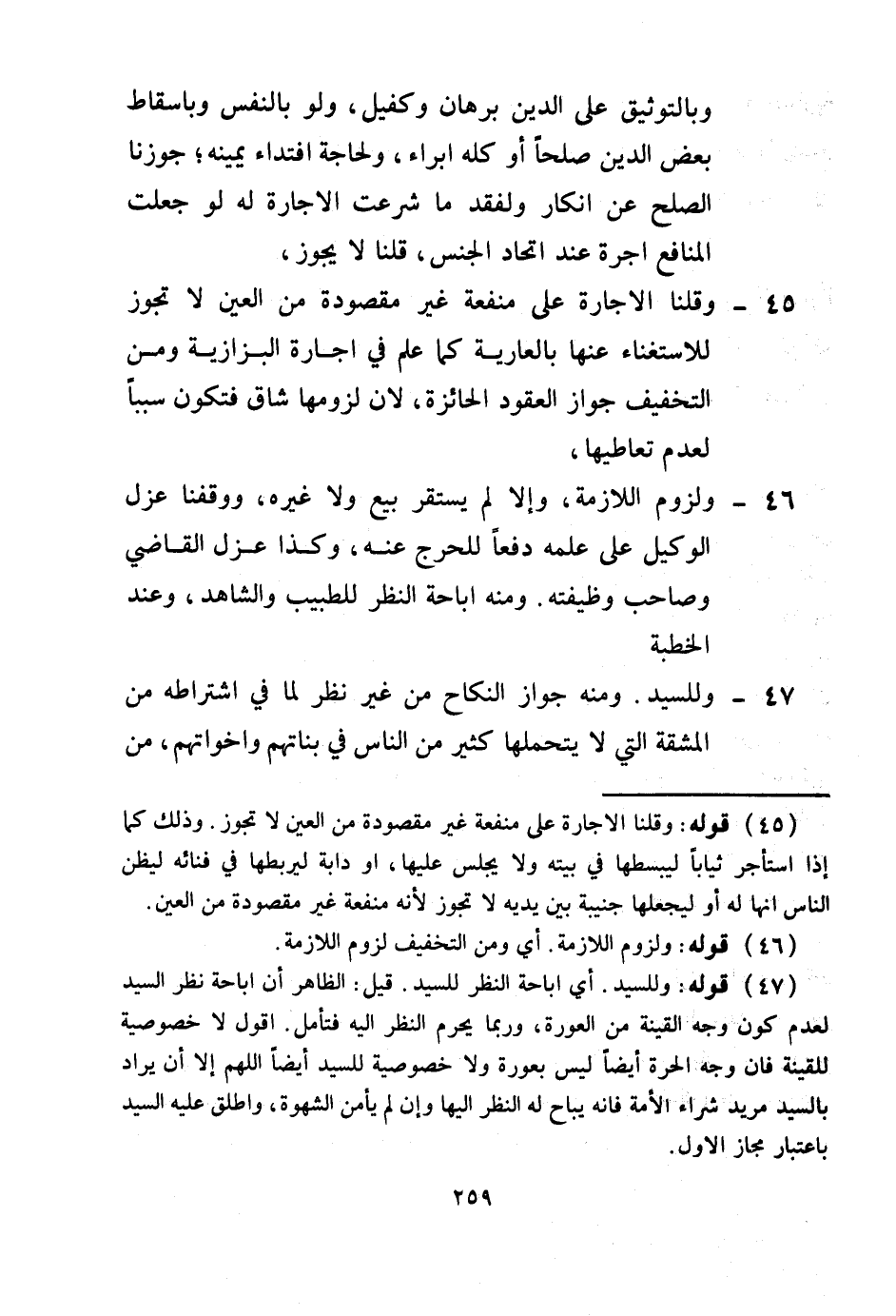 45 - وَقُلْنَا: الْإِجَارَةُ عَلَى مَنْفَعَةٍ غَيْرِ مَقْصُودَةٍ مِنْ الْعَيْنِ لَا تَجُوزُ لِلِاسْتِغْنَاءِ عَنْهَا بِالْعَارِيَّةِ كَمَا عُلِمَ فِي إجَارَةِ الْبَزَّازِيَّةِ، وَمِنْ التَّخْفِيفِ جَوَازُ الْعُقُودِ الْحَائِزَةِ؛ لِأَنَّ لُزُومَهَا شَاقٌّ فَتَكُونُ سَبَبًا لِعَدَمِ تَعَاطِيهَا