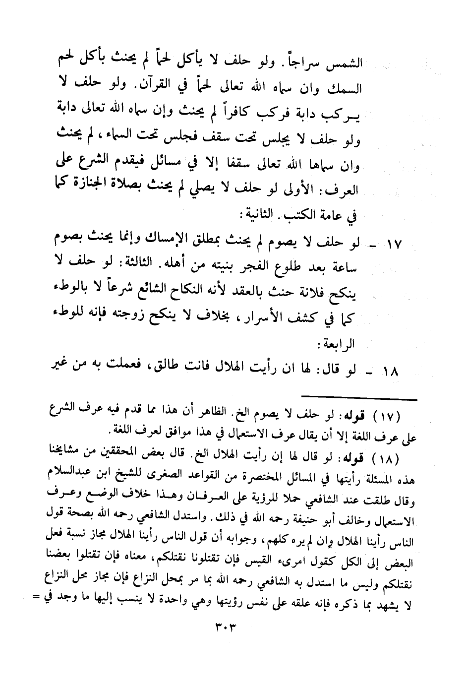 (18) قَوْلُهُ: لَوْ قَالَ لَهَا إنْ رَأَيْتِ الْهِلَالَ إلَخْ: قَالَ بَعْضُ الْمُحَقِّقِينَ مِنْ مَشَايِخِنَا: هَذِهِ الْمَسْأَلَةُ رَأَيْتهَا فِي الْمَسَائِلِ الْمُخْتَصَرَةِ مِنْ الْقَوَاعِدِ الصُّغْرَى لِلشَّيْخِ ابْنِ عَبْدِ السَّلَامِ وَقَالَ طَلُقَتْ عِنْدَ الشَّافِعِيِّ حَمْلًا لِلرُّؤْيَةِ عَلَى الْعِرْفَانِ، وَهَذَا خِلَافُ الْوَضْعِ وَعُرْفِ الِاسْتِعْمَالِ، وَخَالَفَ أَبُو حَنِيفَةَ - رَحِمَهُ اللَّهُ - فِي ذَلِكَ.