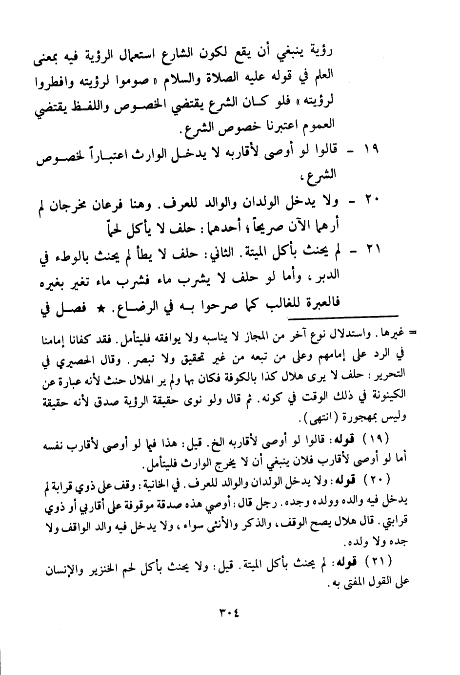 19 - قَالُوا لَوْ أَوْصَى لِأَقَارِبِهِ لَا يَدْخُلُ الْوَارِثُ اعْتِبَارًا لِخُصُوصِ الشَّرْعِ، 20 - وَلَا يَدْخُلُ الْوِلْدَانُ، وَالْوَالِدُ لِلْعُرْفِ.