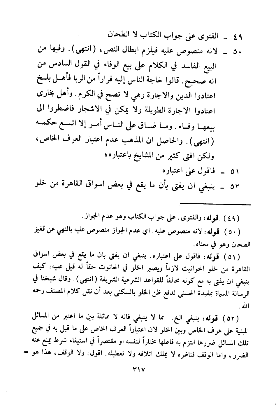 51 -: فَأَقُولُ عَلَى اعْتِبَارِهِ: 52 - يَنْبَغِي أَنْ يُفْتَى بِأَنَّ مَا يَقَعُ فِي بَعْضِ أَسْوَاقِ الْقَاهِرَةِ مِنْ خُلُوِّ
