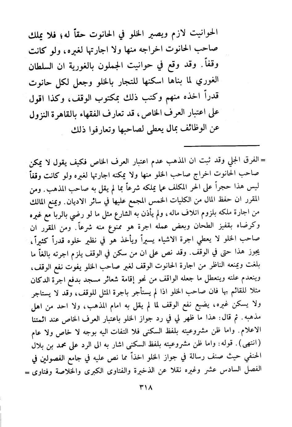 ـــــــــــــــــــــــــــــQالْفَرْقُ الْجَلِيُّ، وَقَدْ ثَبَتَ أَنَّ الْمَذْهَبَ عَدَمُ اعْتِبَارِ الْعُرْفِ الْخَاصِّ فَكَيْفَ يَقُولُ لَا يُمْكِنُ صَاحِبَ الْحَانُوتِ إخْرَاجُ صَاحِبِ الْخُلُوِّ مِنْهَا وَلَا يُمْكِنُهُ إجَارَتُهَا لِغَيْرِهِ، وَلَوْ كَانَتْ وَقْفًا أَلَيْسَ هَذَا حَجْرًا عَلَى الْحُرِّ الْمُكَلَّفِ عَمَّا يَمْلِكُهُ شَرْعًا بِمَا لَمْ يَقُلْ بِهِ صَاحِبُ الْمَذْهَبِ؟